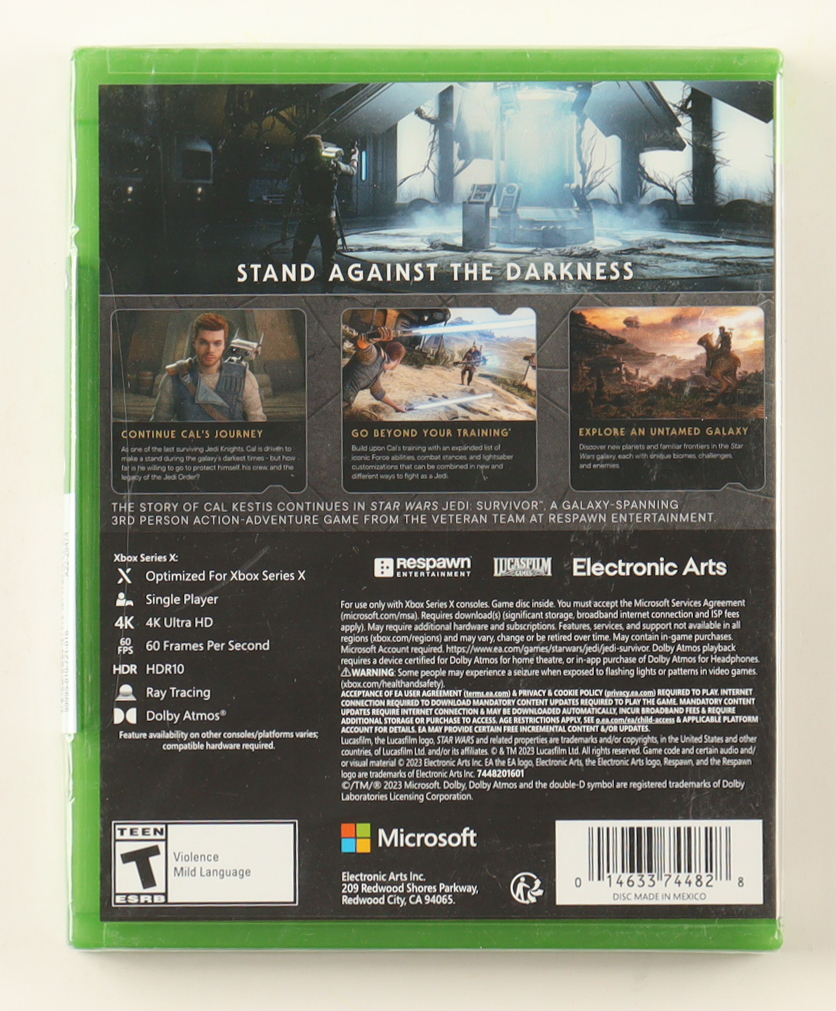 Star Wars Jedi: Survivor -Xbox Series X video game. Game is factory sealed and ESRB rated T.