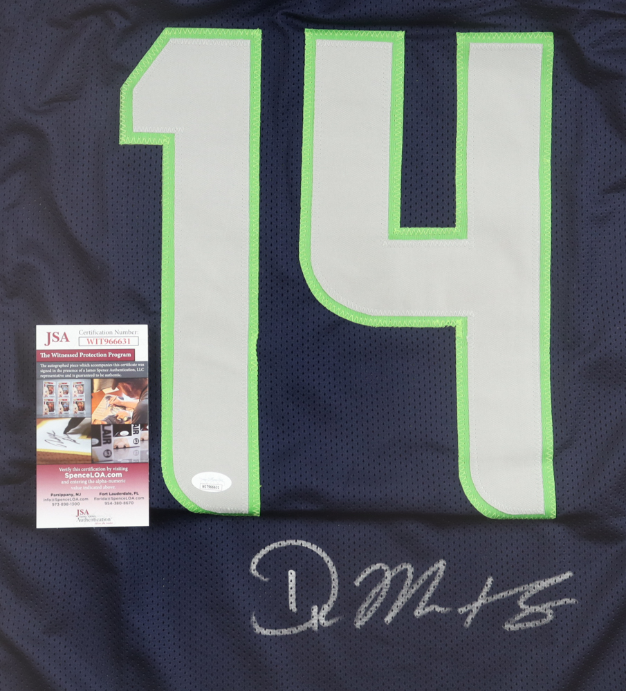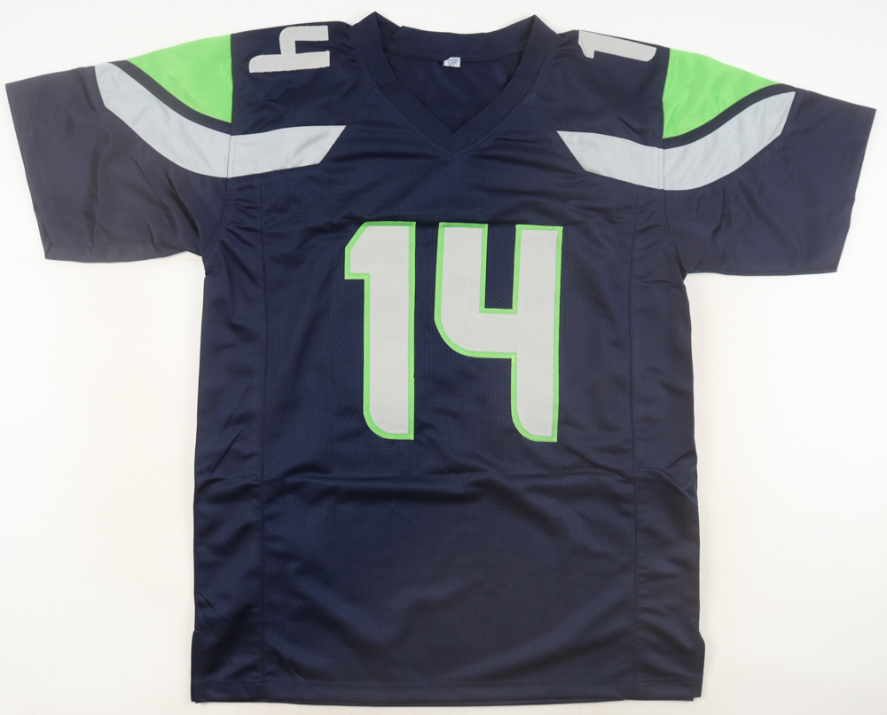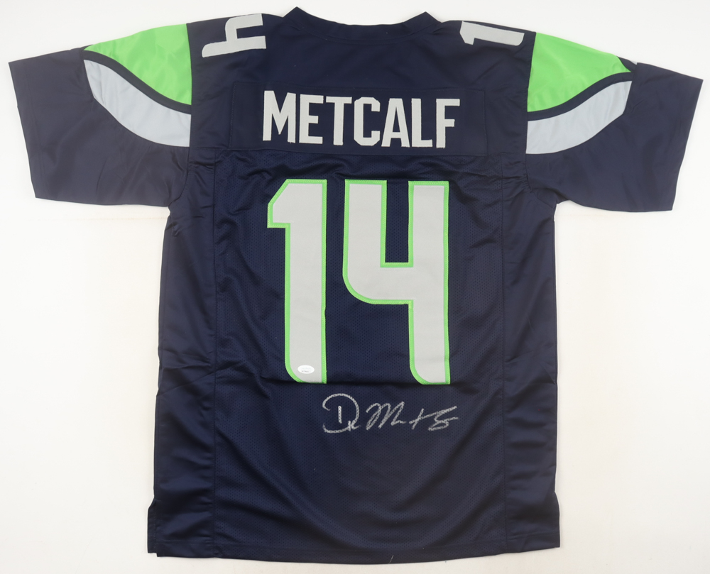 Custom jersey. Everything is sewn on, size XL. Hand-signed by DK Metcalf.