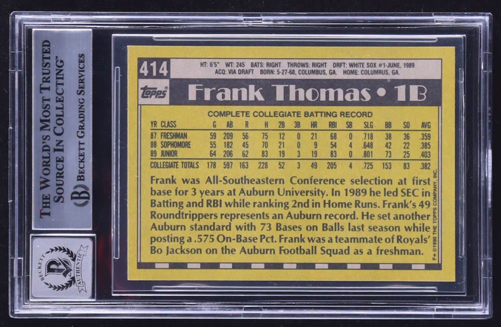 Frank Thomas Signed 1990 Topps #414 RC Inscribed "HOF 2014" (BGS | Autograph Graded 10)