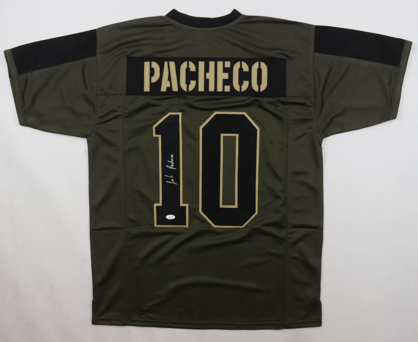 Custom jersey with everything sewn on, size XL. Hand-signed by Isiah Pacheco.