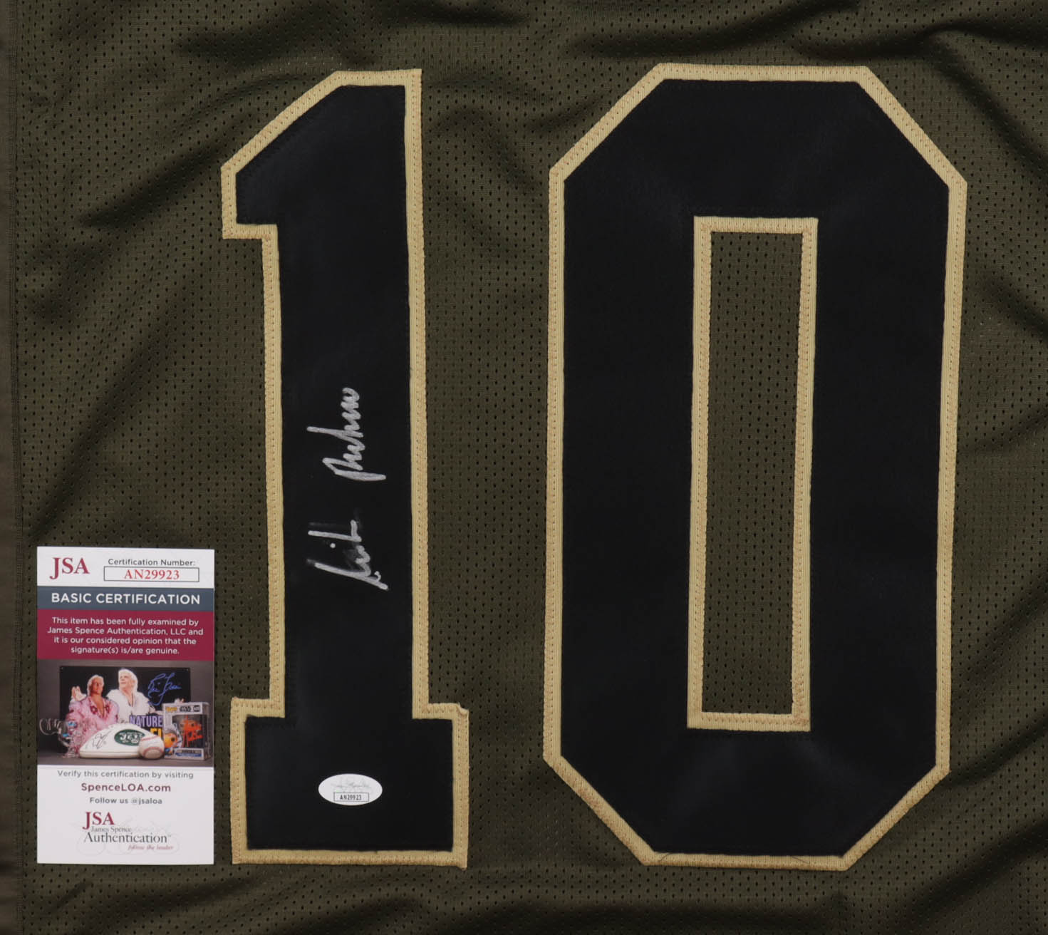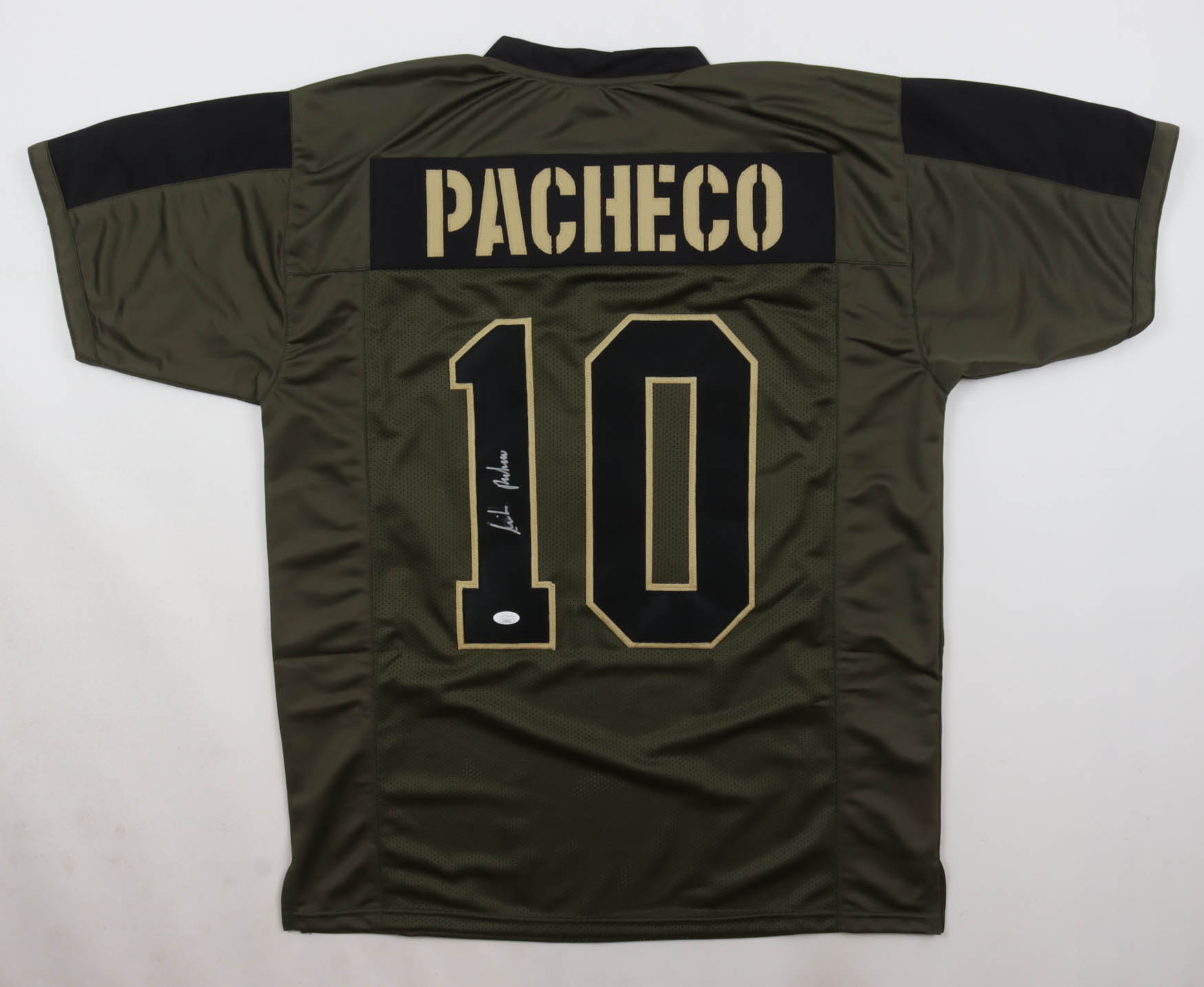 Custom jersey with everything sewn on, size XL. Hand-signed by Isiah Pacheco.