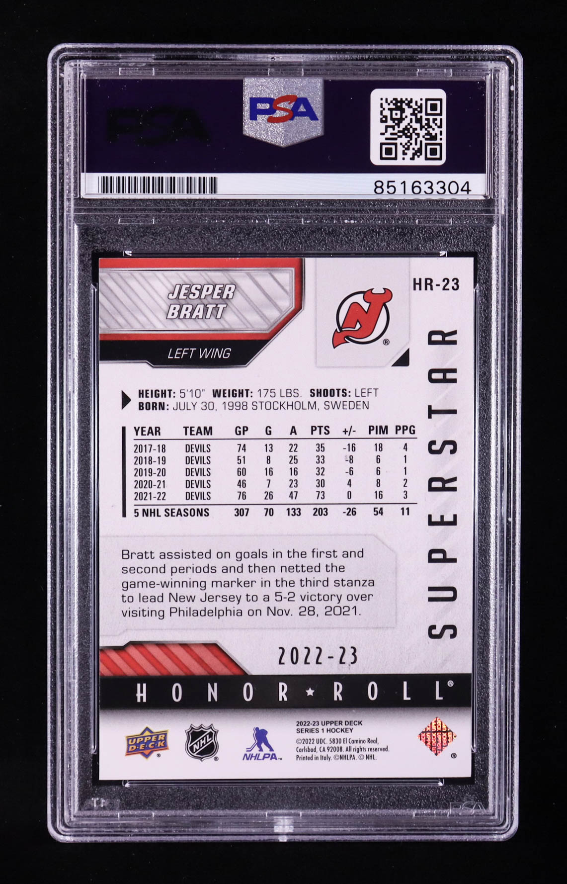 Jesper Bratt Signed 2022-23 Upper Deck Series 1 Honor Roll Superstar #HR-23 (PSA)