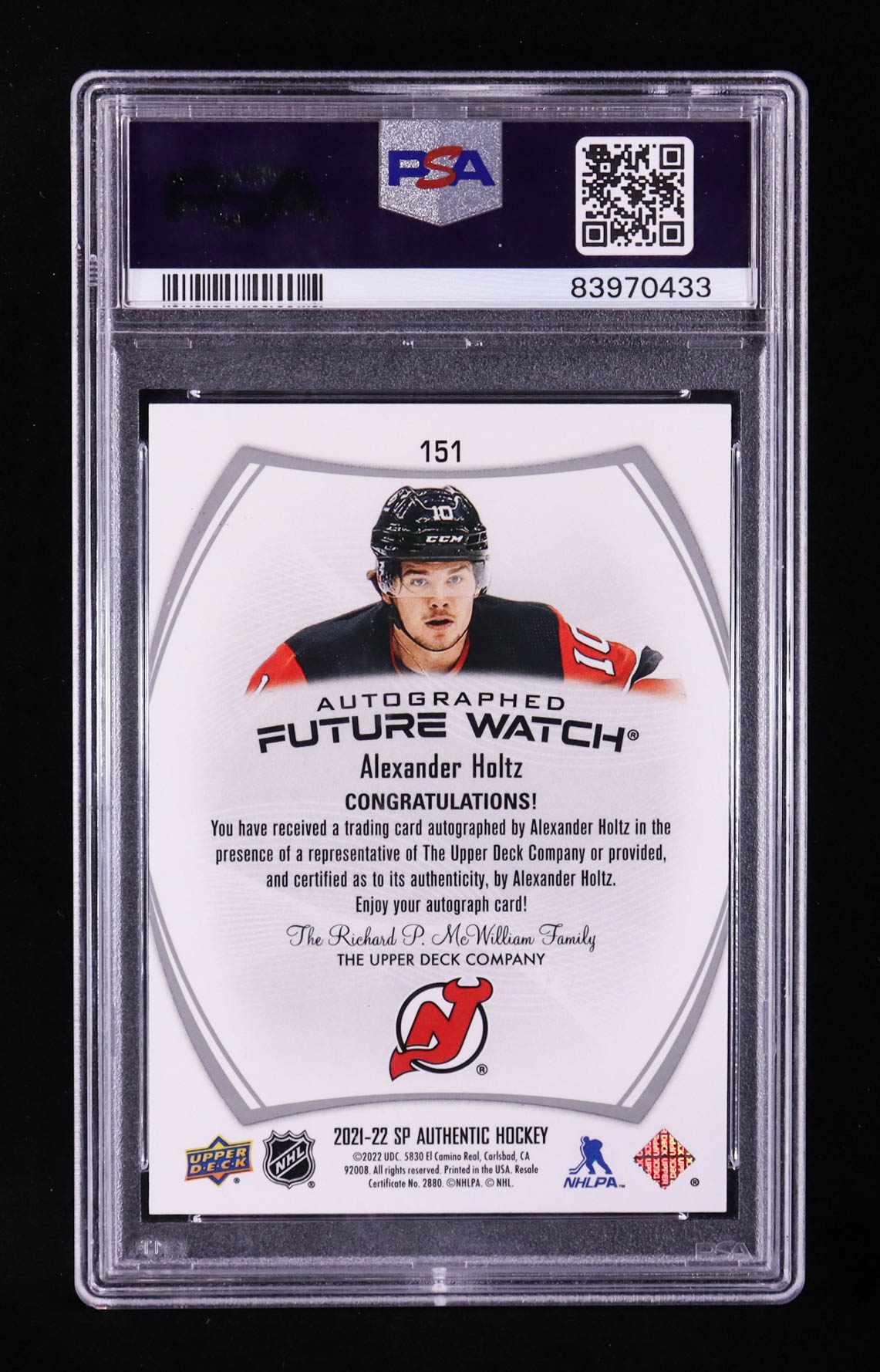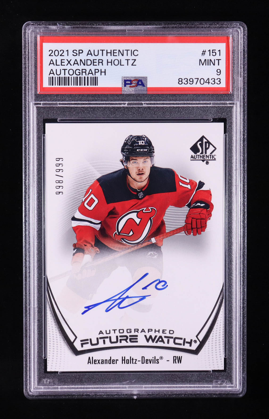 Alexander Holtz 2021 Sp Future Watch Authentic Autograph #151 RC #998/999 (PSA 9)