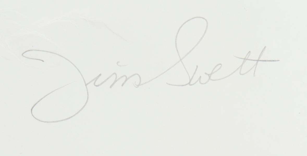Lithograph measures approximately 18" x 22" in size. Hand-signed by James E. Swett (D. 2009). Lithograph is also signed by artist Stan Stokes. Please note, there are creases throughout the lithograph.