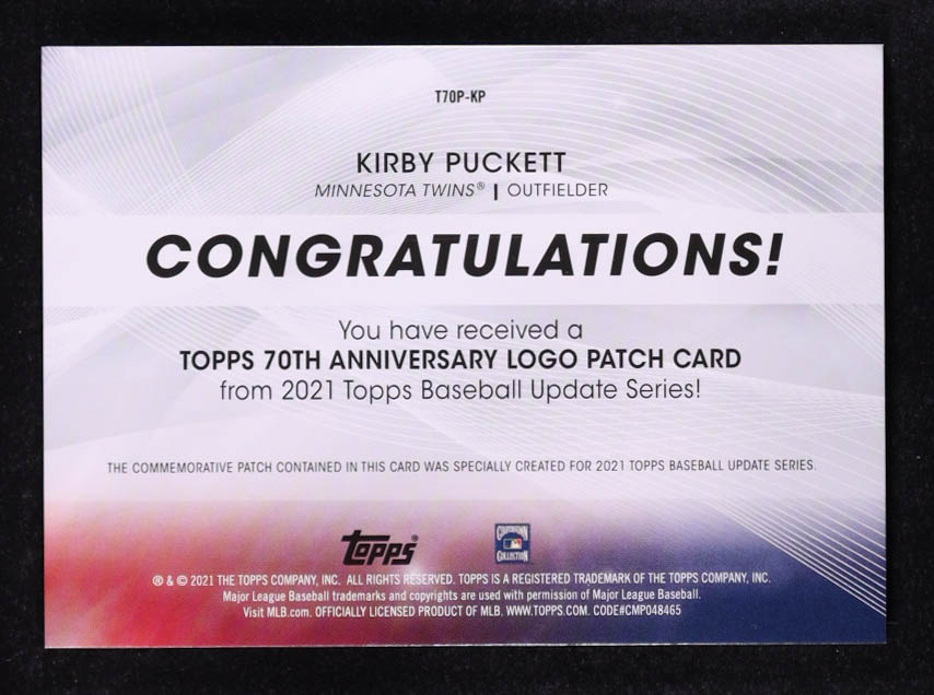 Kirby Puckett 2021 Topps Update 70th Anniversary Logo Patches #T70PKP