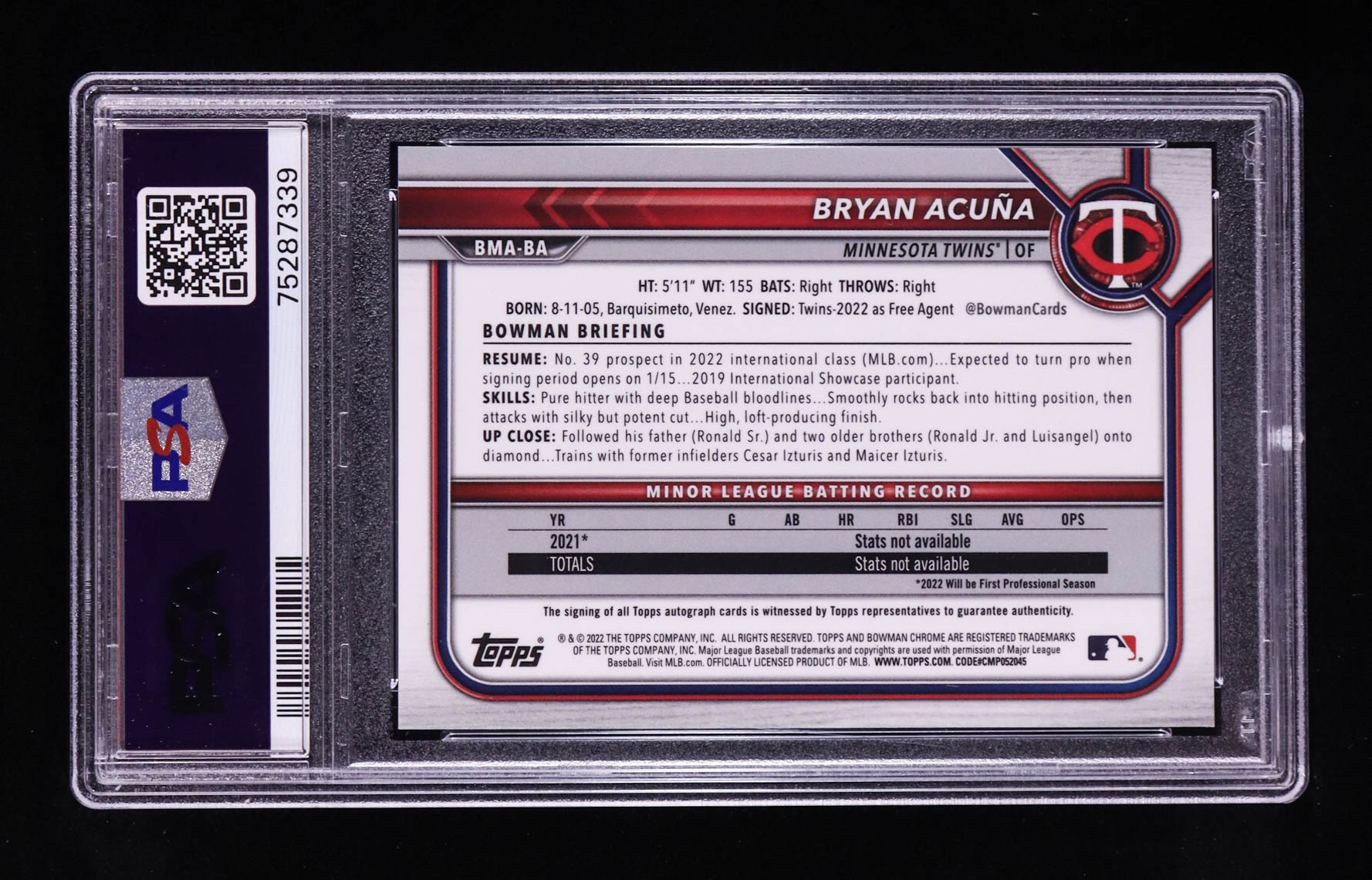 Bryan Acuna 2022 Bowman Mega Box Chrome Autograph Mojo Refractor #BMA-BA RC (PSA 10)