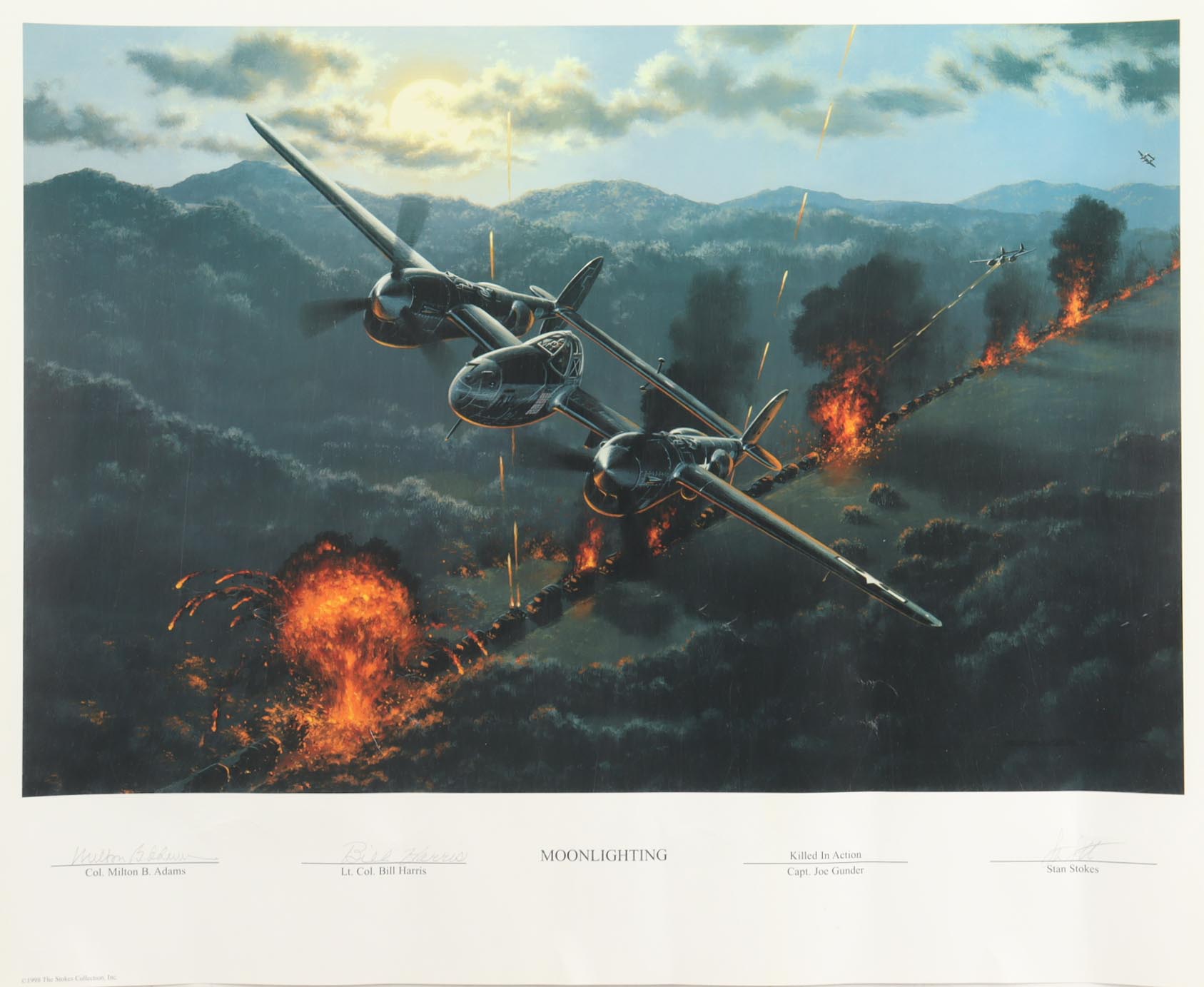 Milton Adams & Bill Harris Signed Stan Stokes "Moonlighting" Lithograph (AIV)