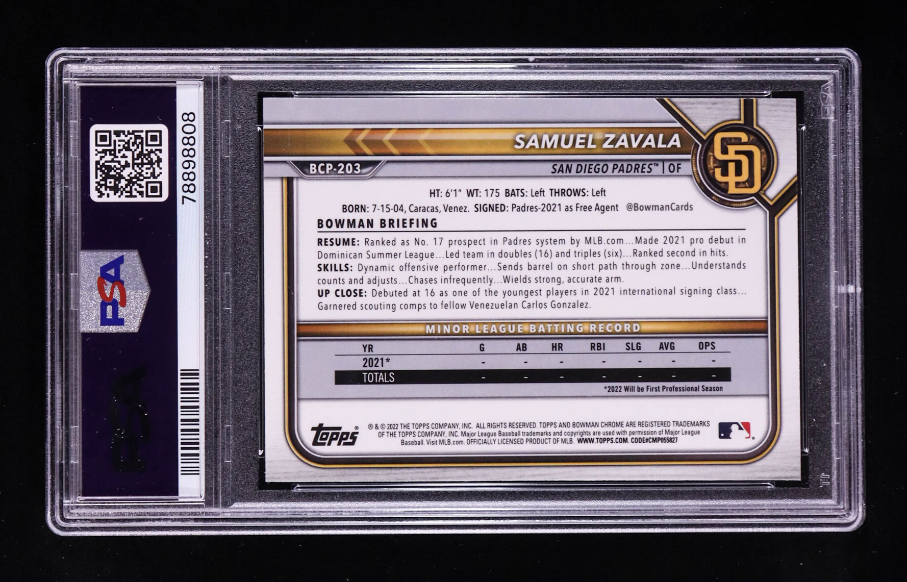Samuel Zavala Signed 2022 Bowman Chrome Prospects #BCP-203 RC (PSA 9 | Autograph Graded PSA 10)
