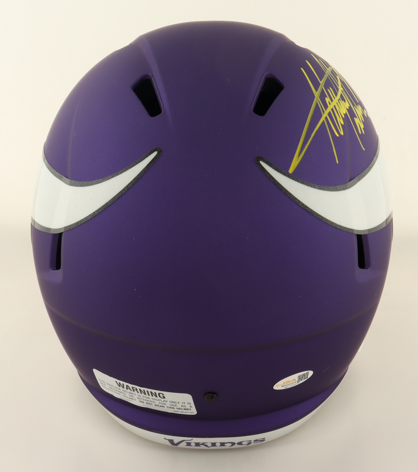 Riddell Minnesota Vikings Full-Size Replica Speed Helmet. Hand-signed by Adrian Peterson.