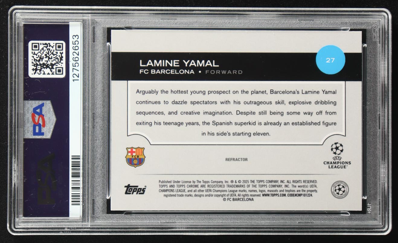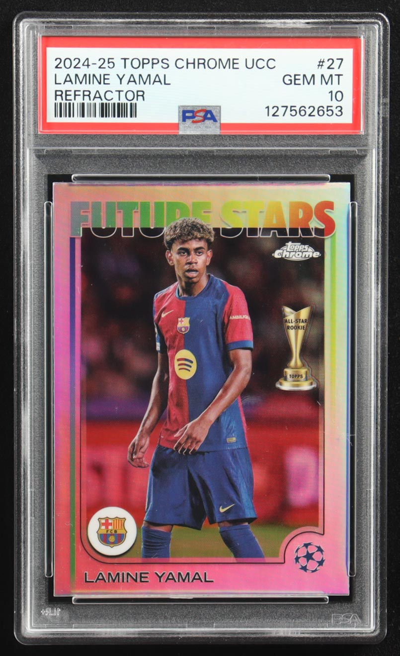 Lamine Yamal 2024-25 Topps Chrome UEFA Club Competitions Refractors #27 FS (PSA 10)