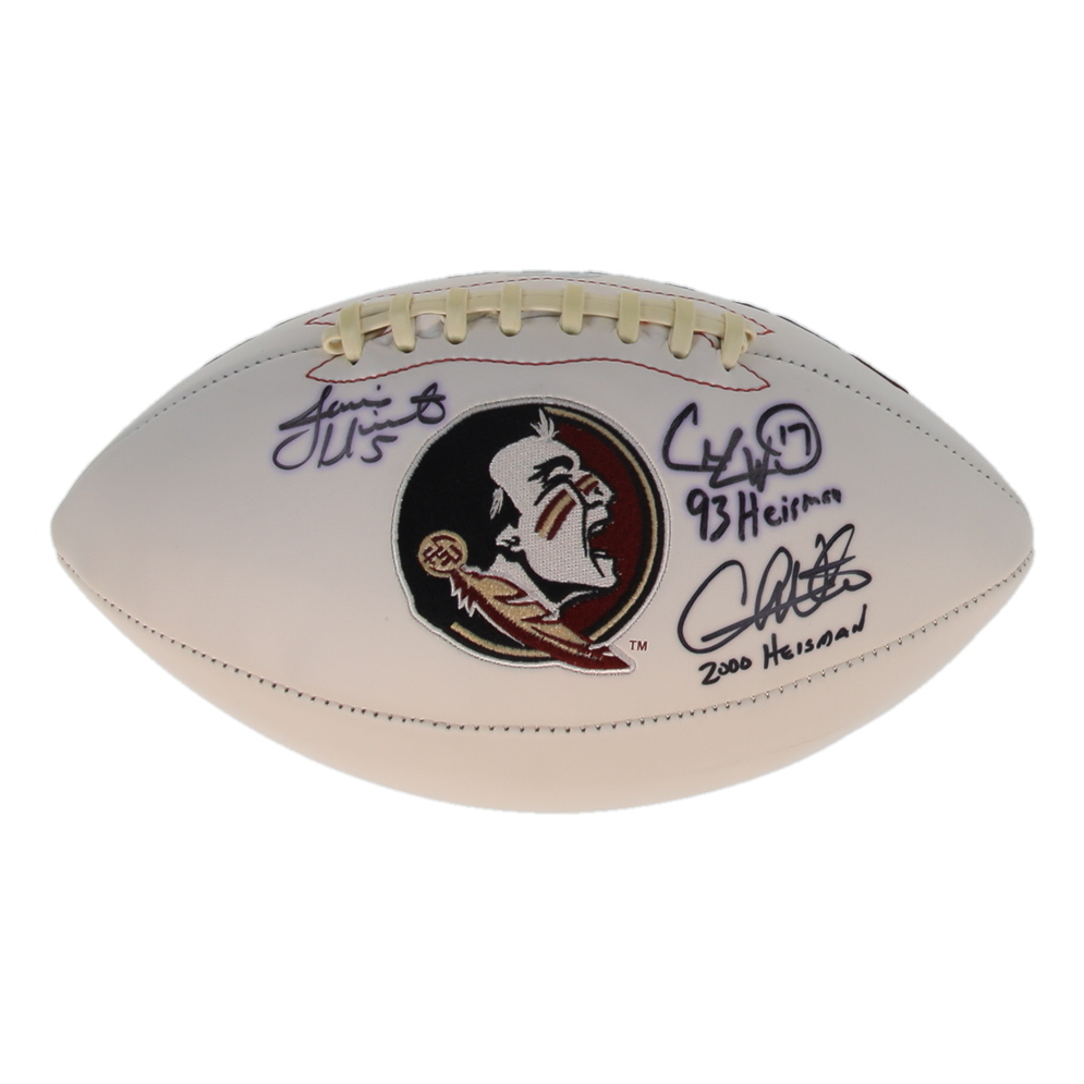Florida State Seminoles logo football. Hand-signed and inscribed Charlie Ward, Chris Weinke and Jameis Winston.