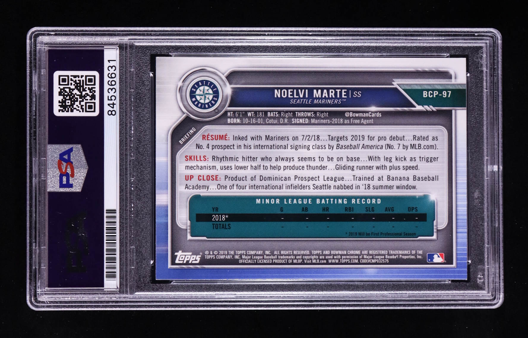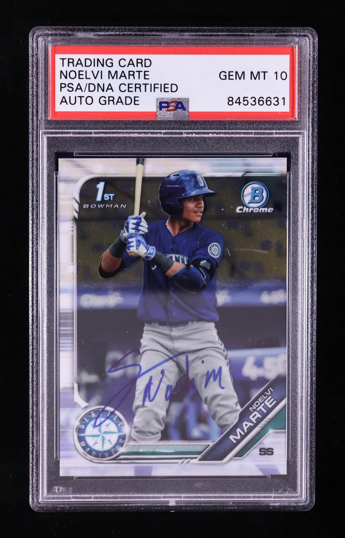 Noelvi Marte Signed 2018 Bowman 1st Chrome Prospects #BCP-97 RC (PSA | Autograph Graded PSA 10)