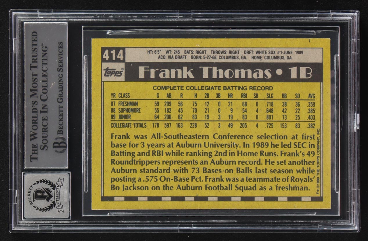 Frank Thomas Signed 1990 Topps #414 RC (BGS | Autograph Graded BGS 10)