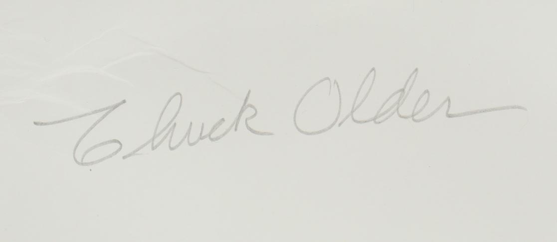 Lithograph measures approximately 18" x 22" in size. Hand-signed by Chuck Older. Lithograph is also signed by artist Stan Stokes. Please note, there are creases throughout the lithograph.