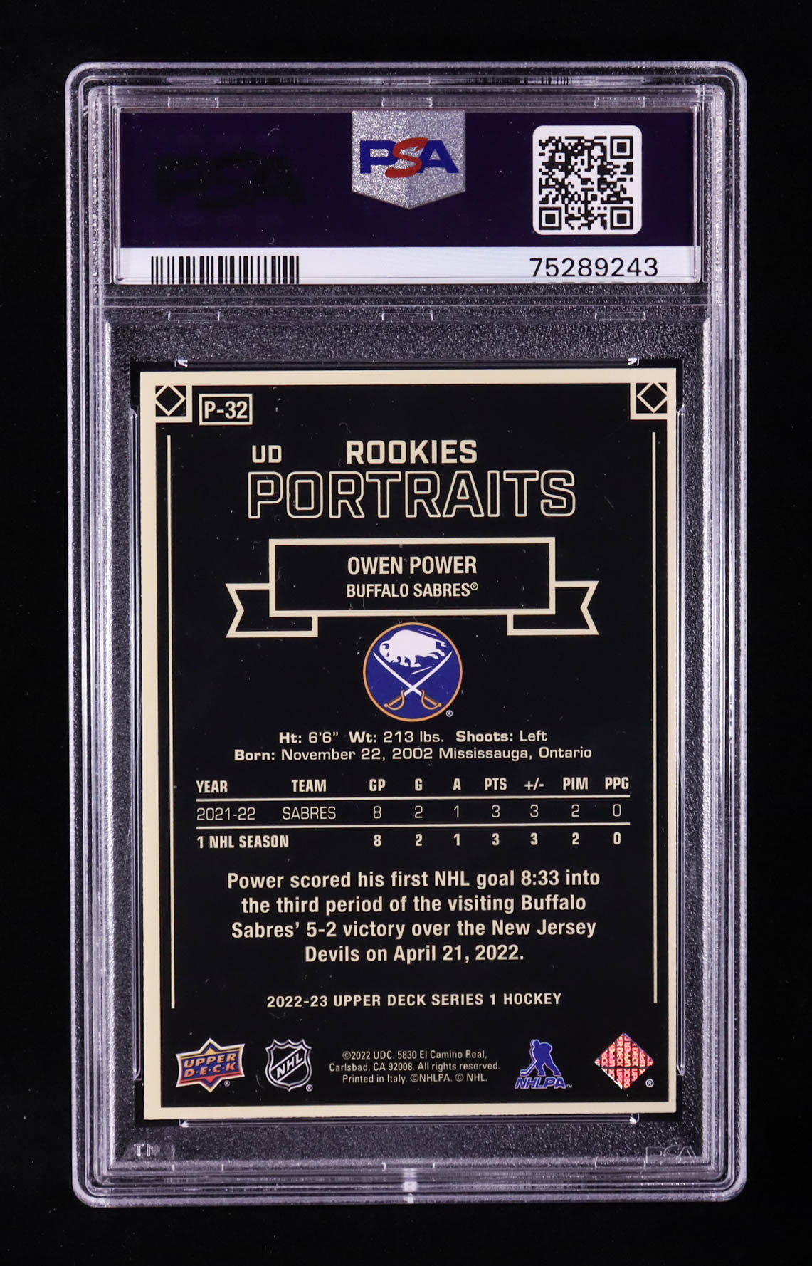 Owen Power Signed 2022-23 Upper Deck Series 1 Rookies Portraits #P-32 (PSA | Autograph Graded PSA 10)