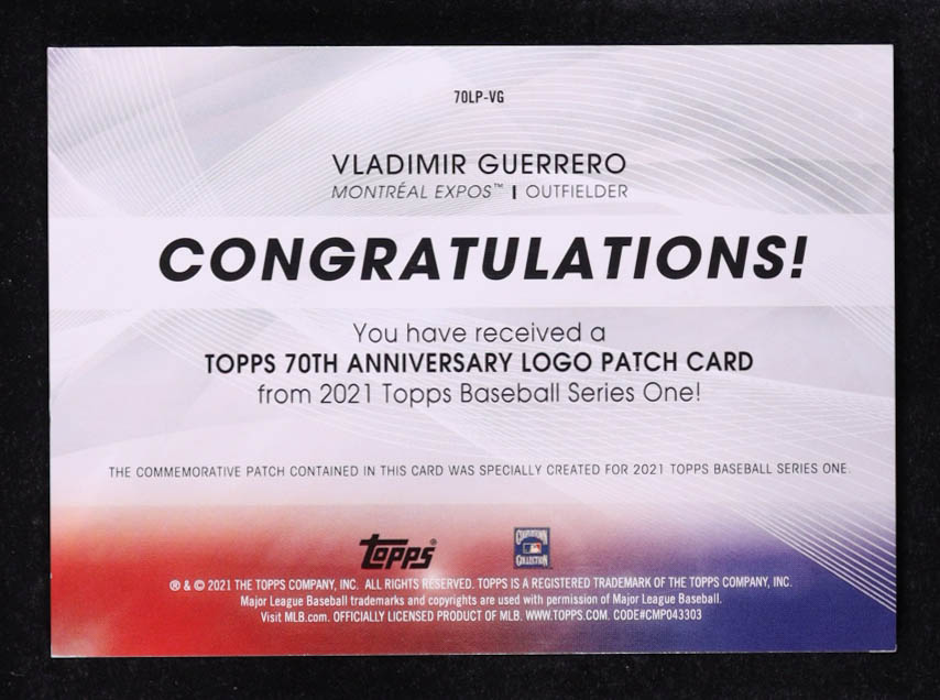 Vladimir Guerrero 2021 Topps 70th Anniversary Commemorative Logo Patches #70LPVG