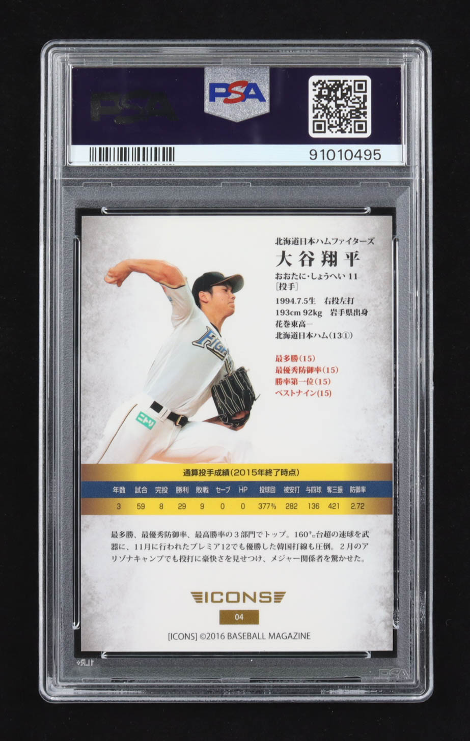 Shohei Ohtani 2016 BBM Icons-Speed #04 RC (PSA 10)