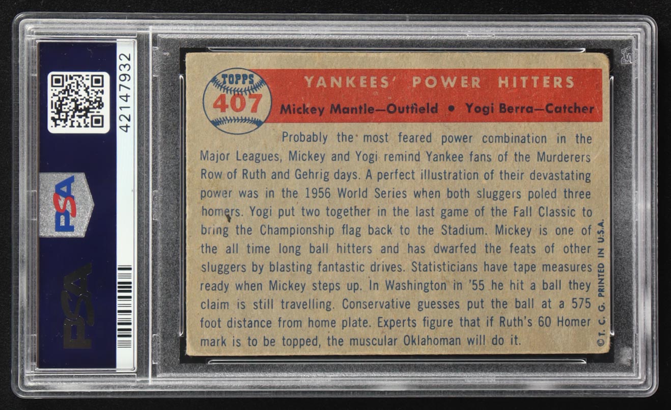 Mickey Mantle / Yogi Berra 1957 Topps #407 / Yankees Power Hitters (PSA 2)