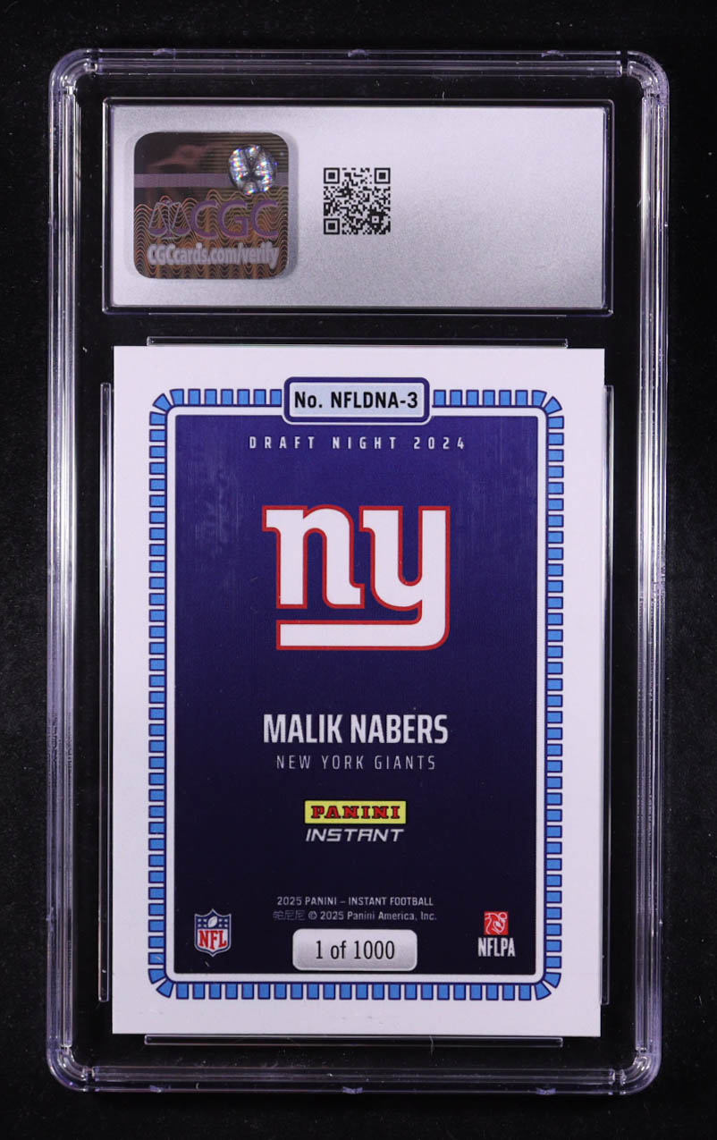 Malik Nabers 2025 Panini Instant NFL Draft Night #NFLDNA3 RC (CGC 10)