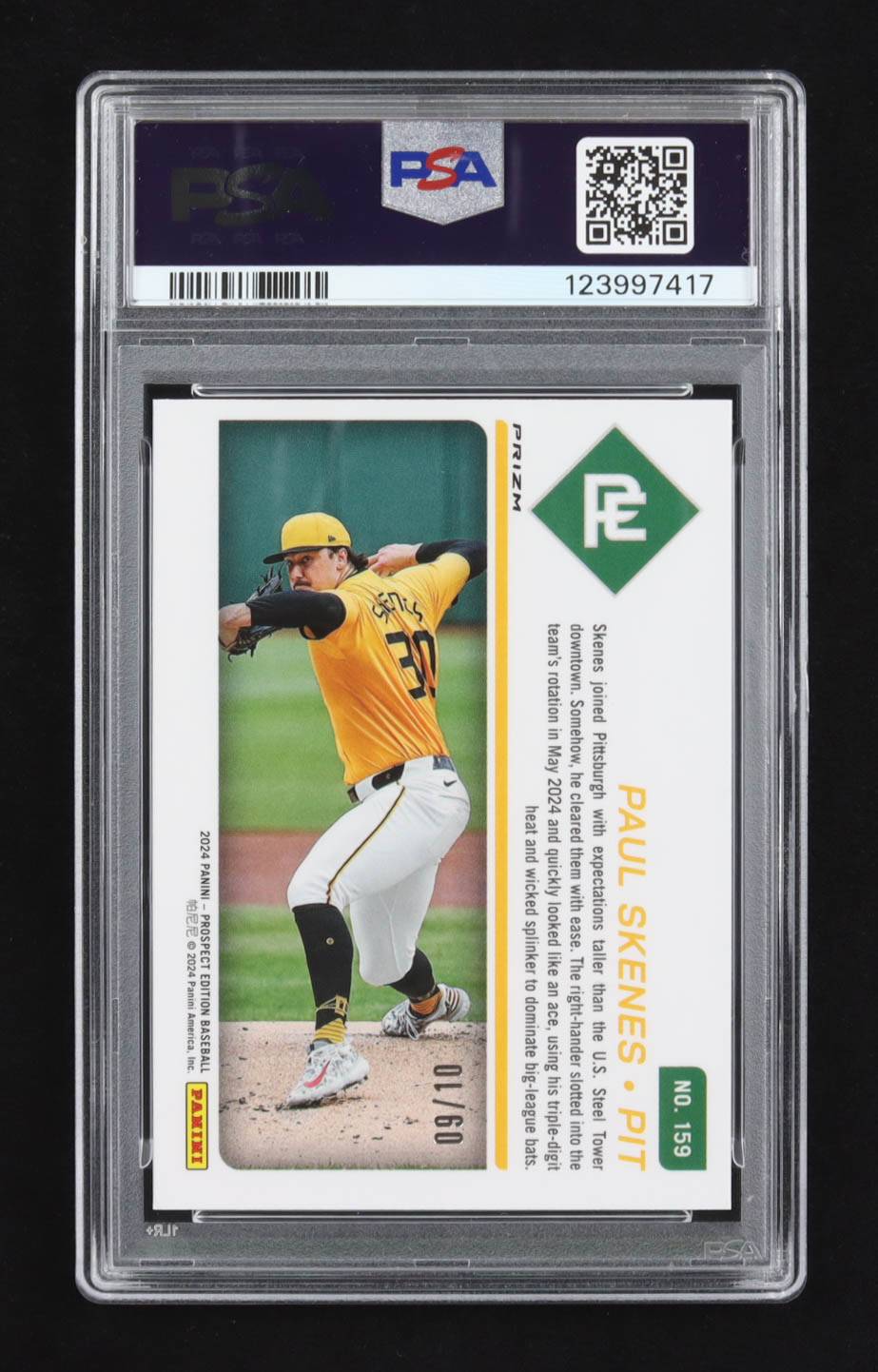 Paul Skenes 2024 Panini Prospect Edition Holo Gold Ice #159 #09/10 RC (PSA 10)