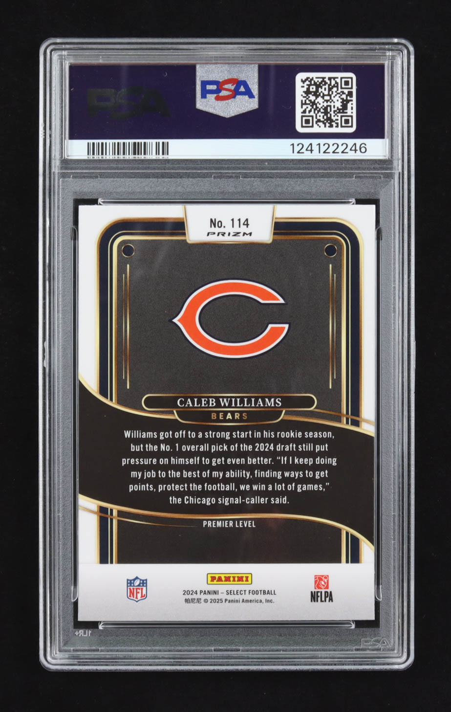 Caleb Williams 2024 Select Prizm Green and Yellow Shock #114 RC (PSA 10)