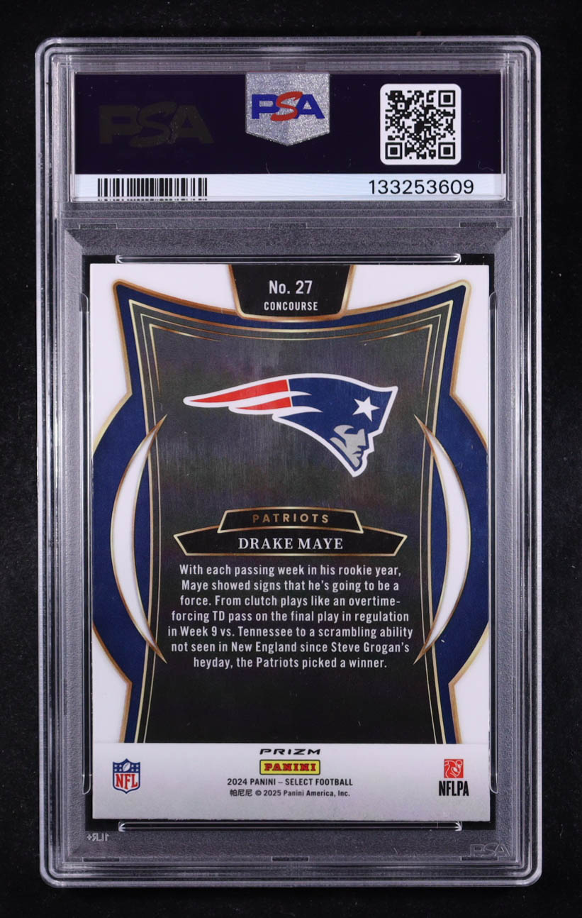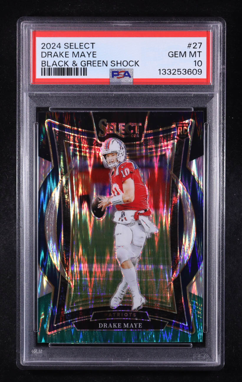 Drake Maye 2024 Select Prizm Black and Green Shock #27 RC (PSA 10)