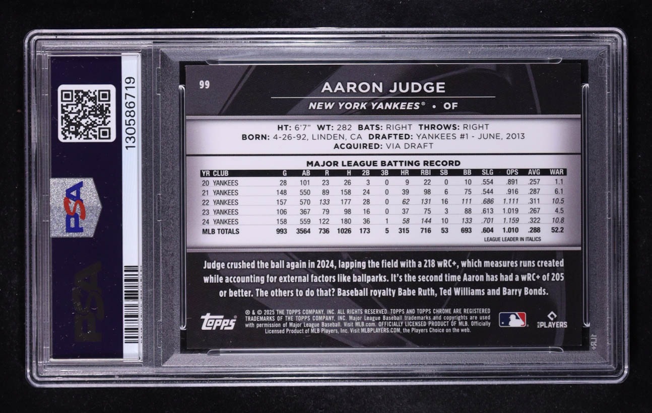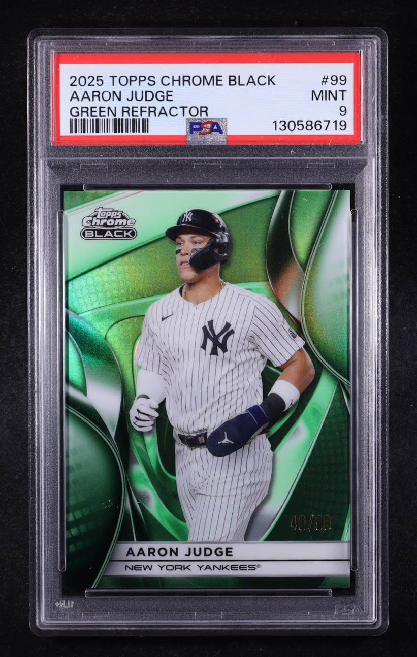 Aaron Judge 2025 Topps Chrome Black Green Refractors #99 #48/99 (PSA 9)