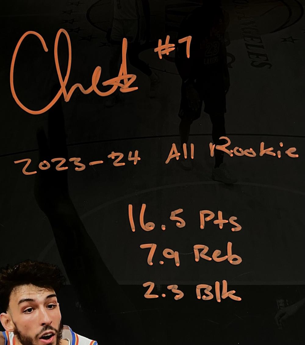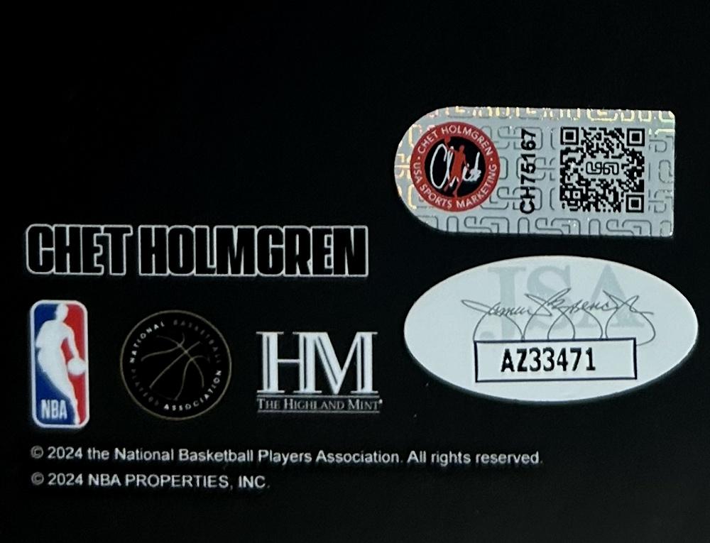 Photo measures 16" x 20" in size and has been hand-signed and inscribed by Chet Holmgren (Oklahoma City Thunder).