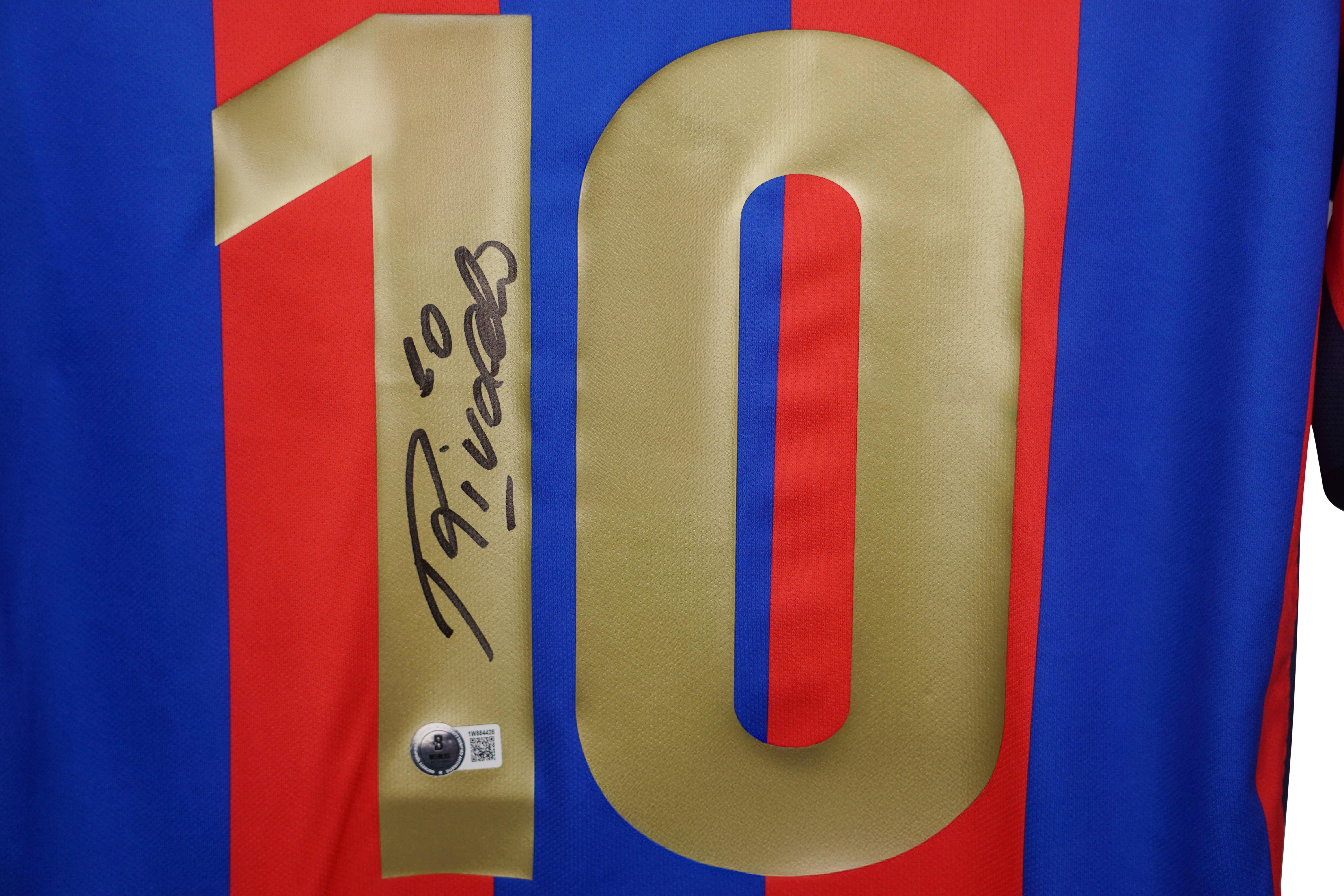 Nike jersey with everything pressed on, size L. Hand-signed by Rivaldo.