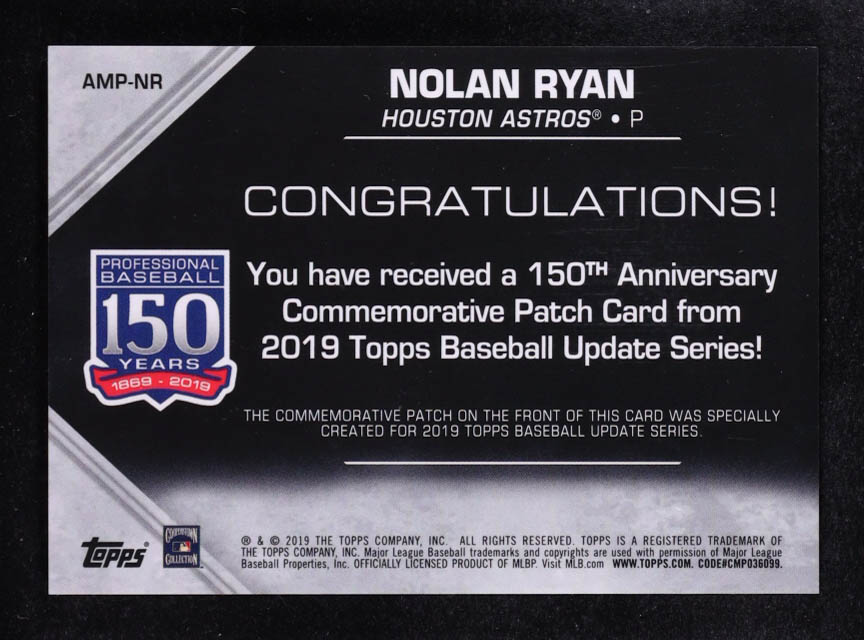 Nolan Ryan 2019 Topps Update 150th Anniversary Manufactured Patches #AMPNR