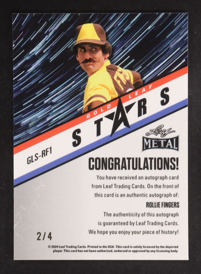Rollie Fingers 2024 Leaf Metal Gold Leaf Stars Red Crystal Autographs #GLSRF1 #2/4