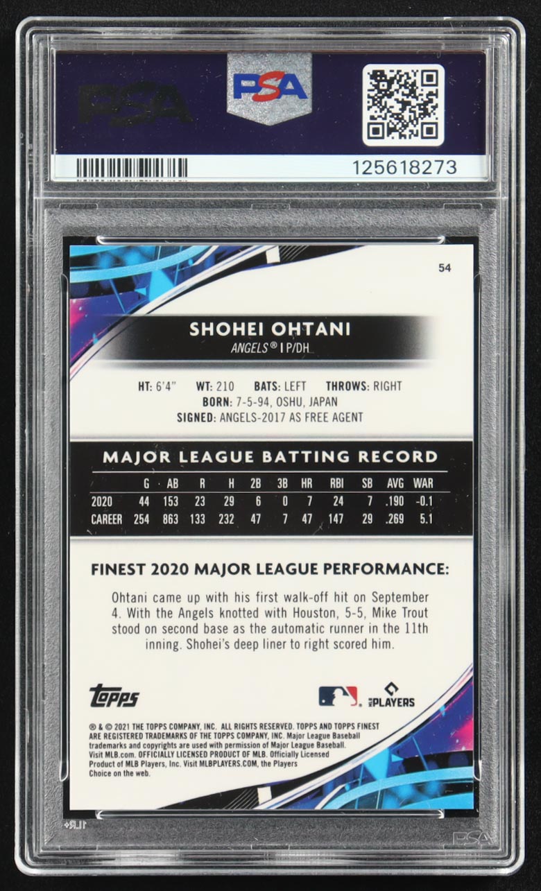 Shohei Ohtani 2021 Finest Green Speckle Refractors #54 #079/125 (PSA 9)