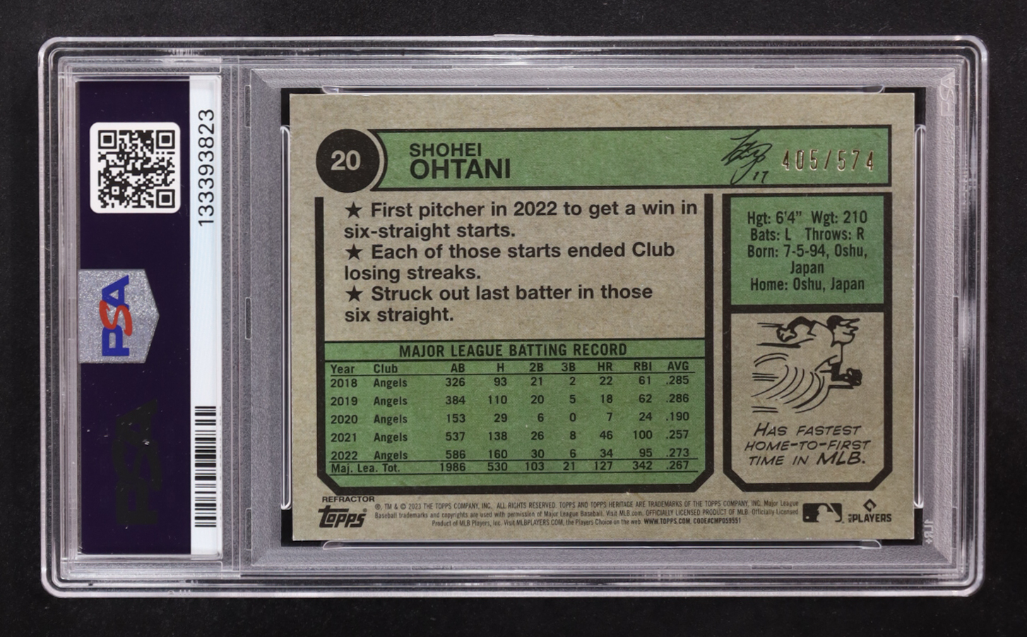 Shohei Ohtani 2023 Topps Heritage Chrome Refractors #20 #405/574 (PSA 9)