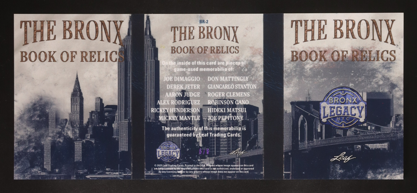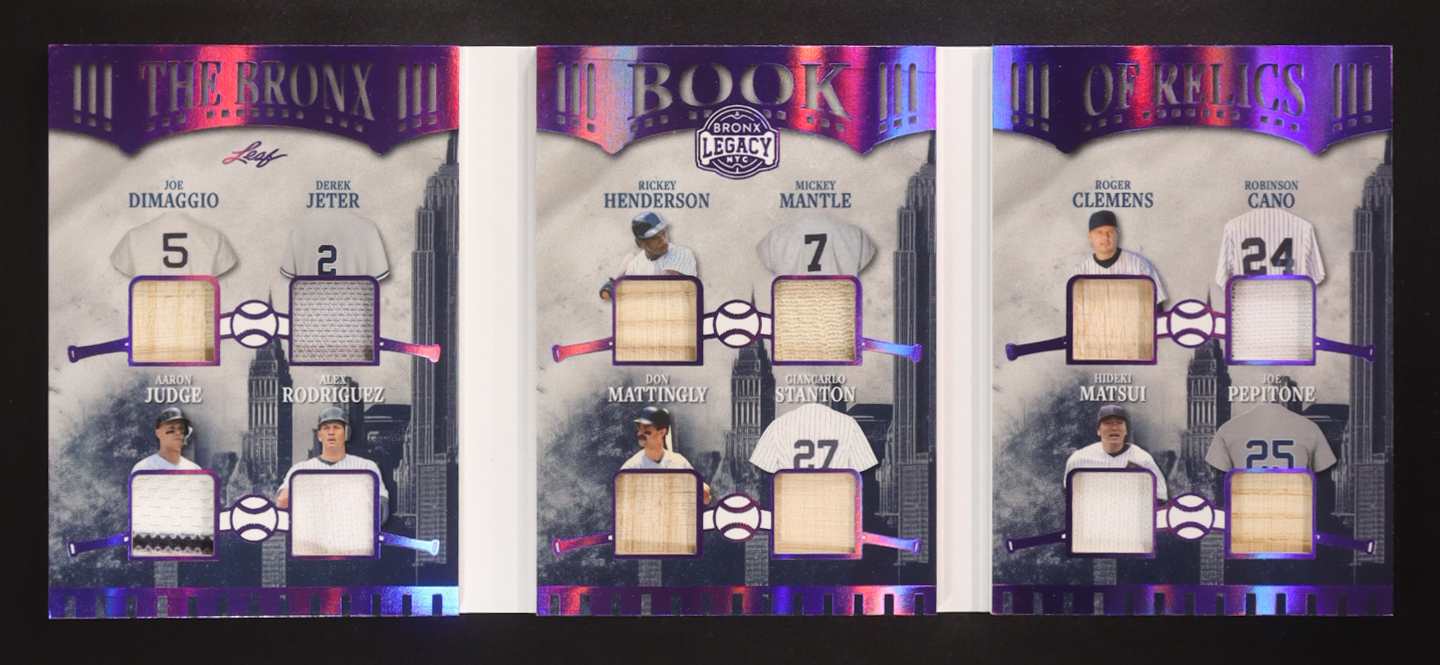 Judge/Dimaggio/Jeter/Rodriguez/Henderson/Mantle/ Mattingly/Stanton/Clemons/Cano/Matsui/Pepitone 2025 Leaf Bronx Legacy The Bronx Book Of Relics Purple Foil Bat JSY #BR2 #6/8