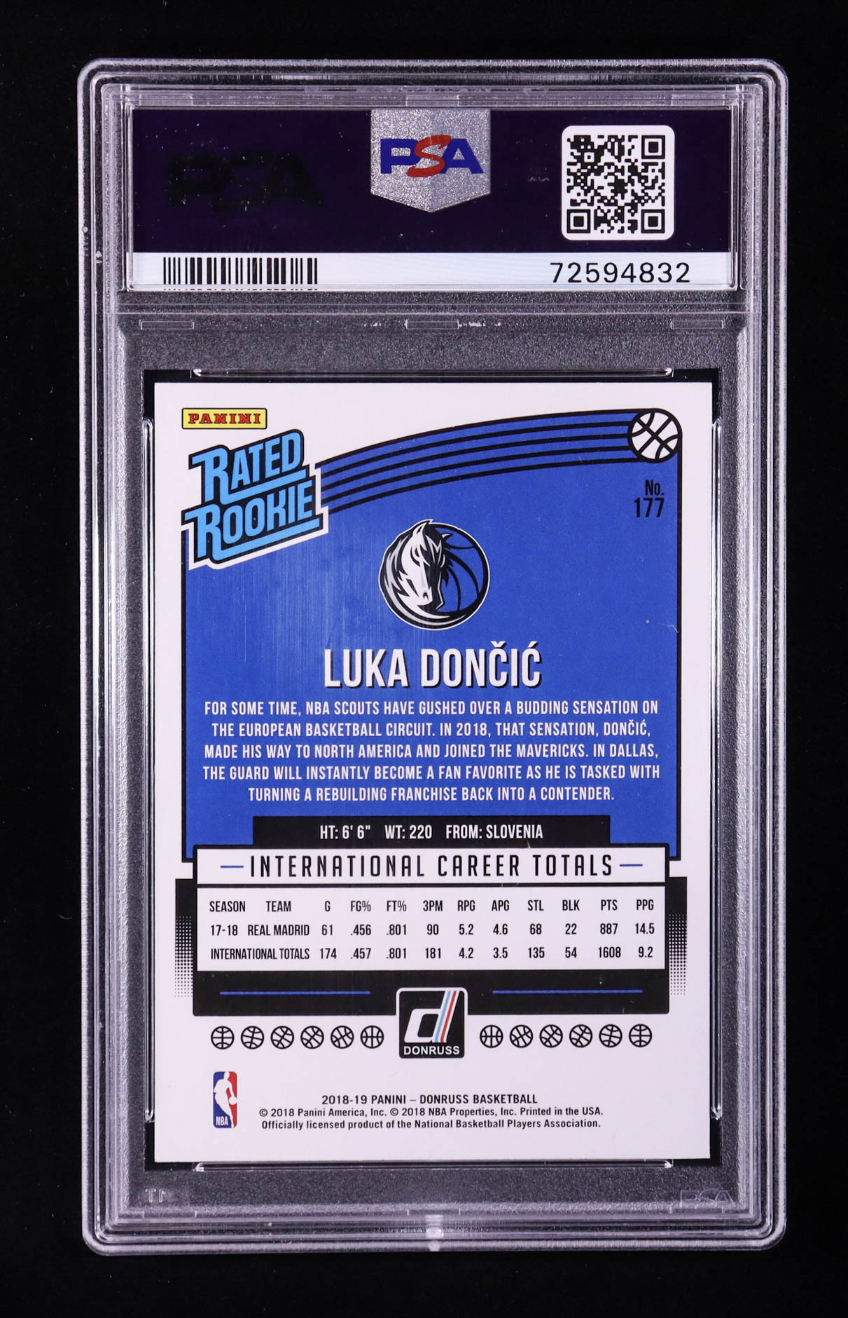 Luka Doncic 2018-19 Donruss #177 RR RC (PSA 9)