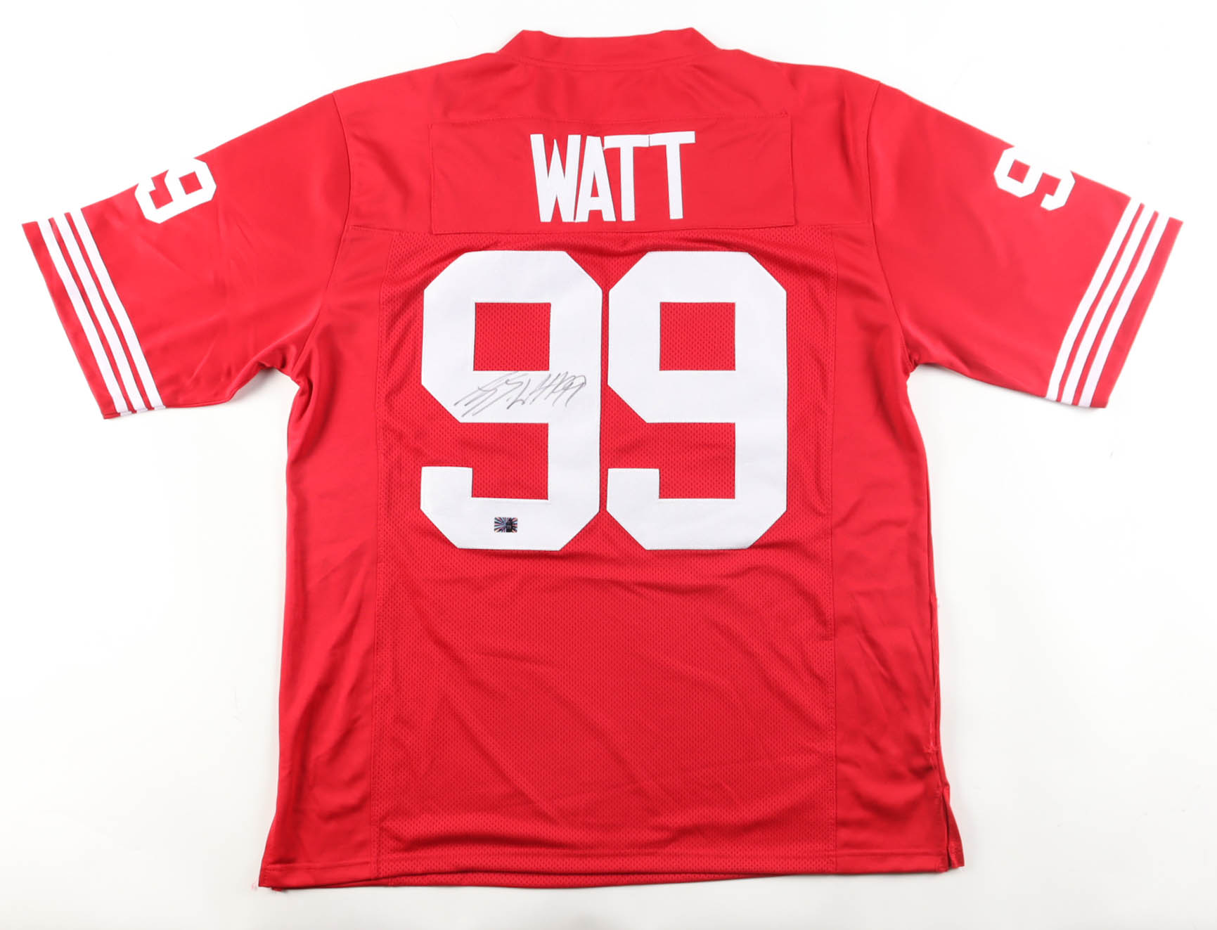 Custom jersey with everything sewn on, size XL. Hand-signed by J. J. Watt (Houston Texans).