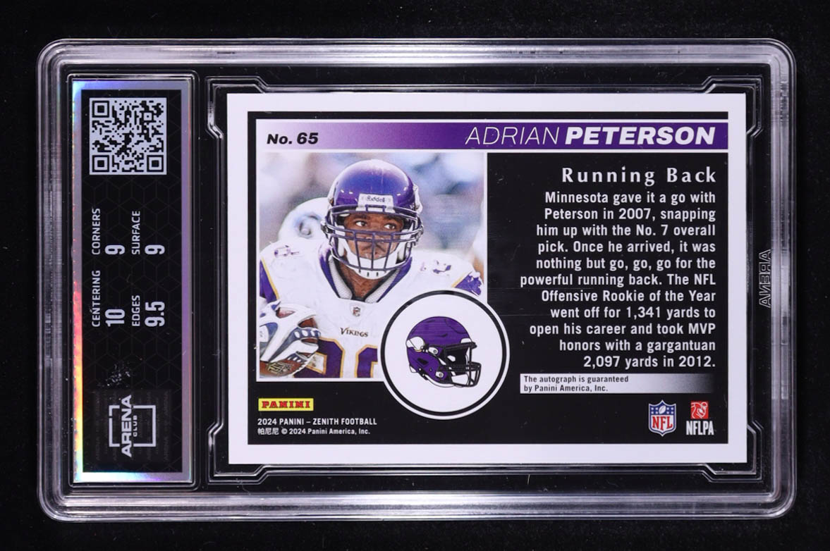 Adrian Peterson 2024 Zenith Autographs No Huddle #65 (Arena 9.5)