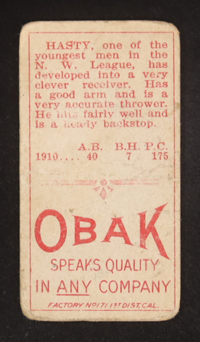 Tom Hasty 1909-1911 Obak T212 #NNO