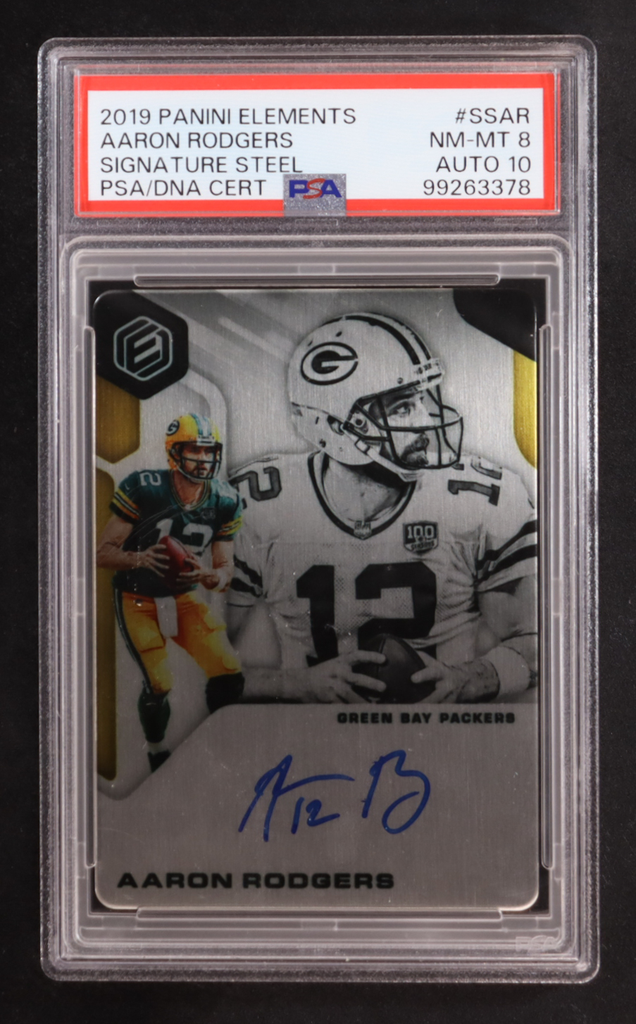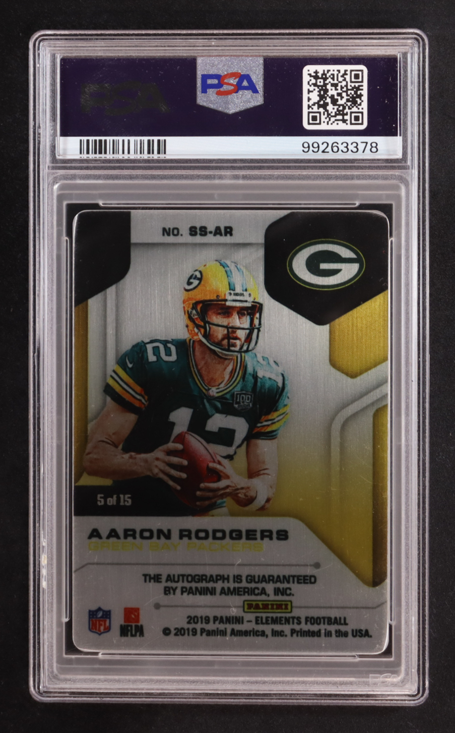 Aaron Rodgers 2019 Panini Elements Signatures Steel #68 #05/15 (PSA 8 | Auto 10)