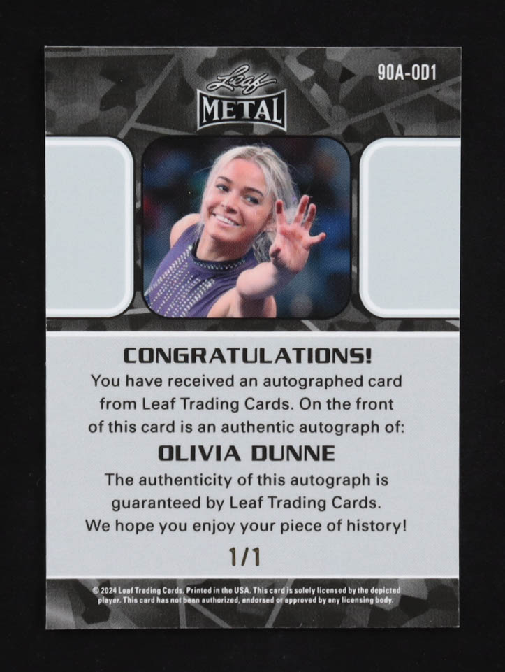 Olivia Dunne 2024 Leaf Metal White Shimmer Auto #90A-OD1 #1/1