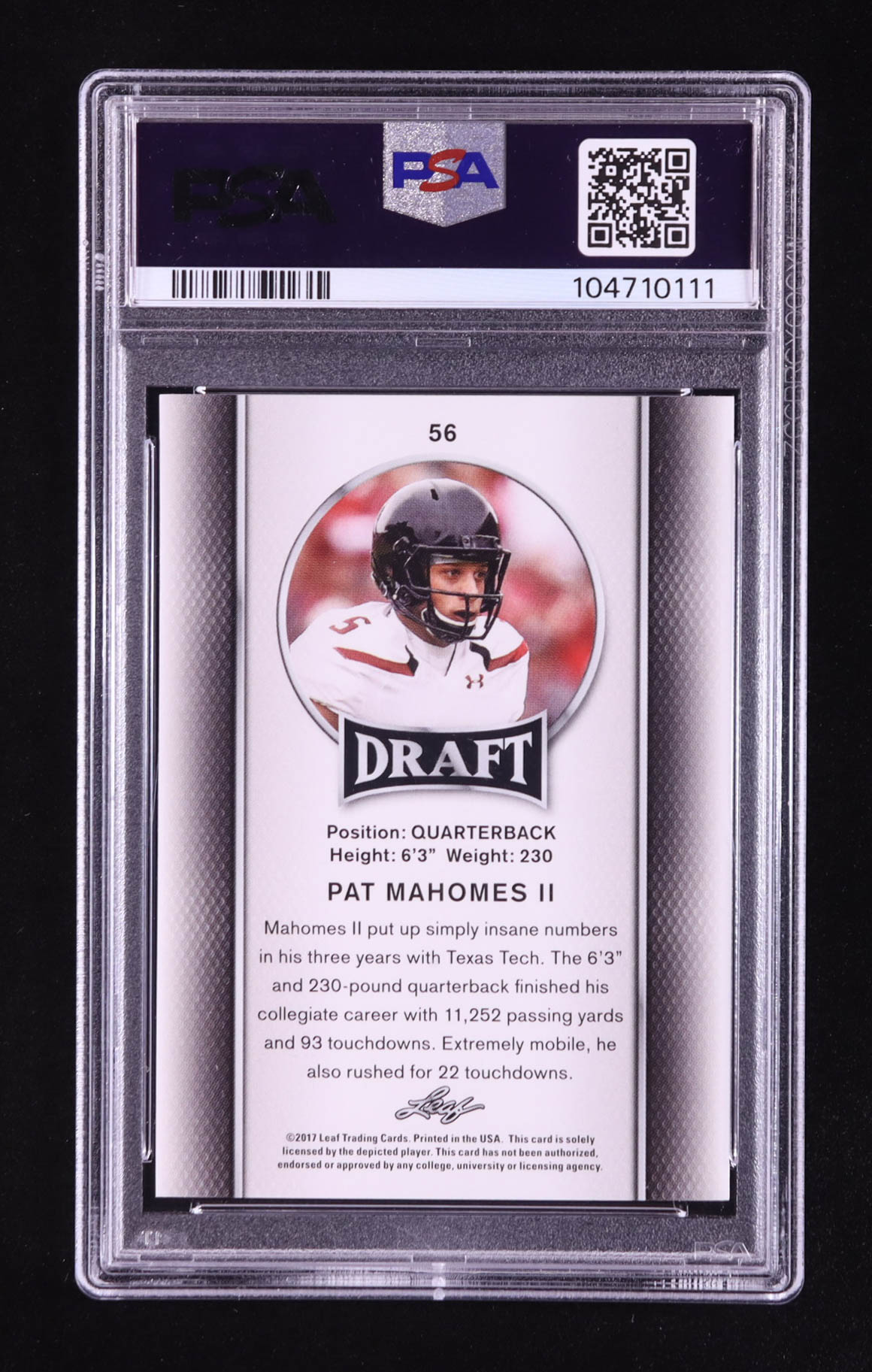Patrick Mahomes II 2017 Leaf Draft #56 RC (PSA 8)