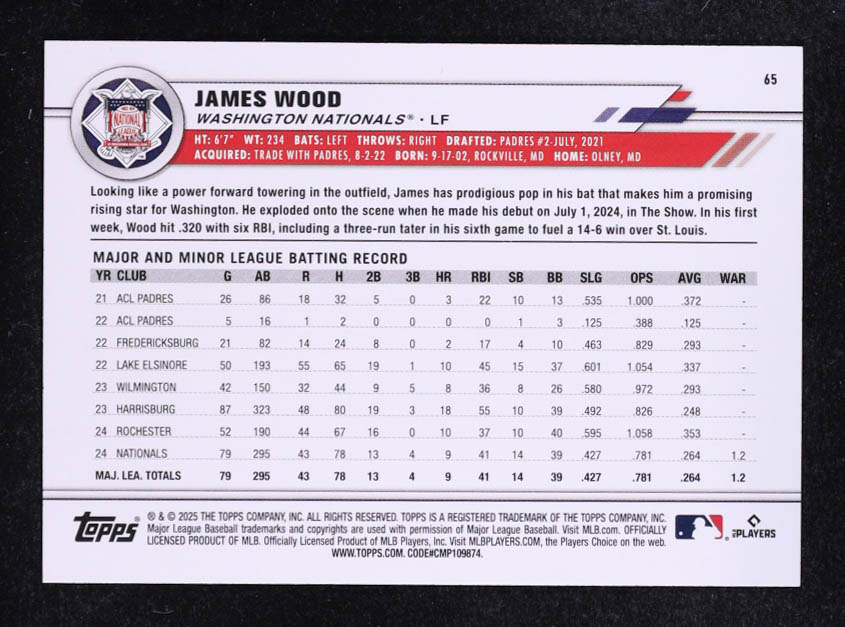 James Wood 2025 Topps All-Star Game #65 RC