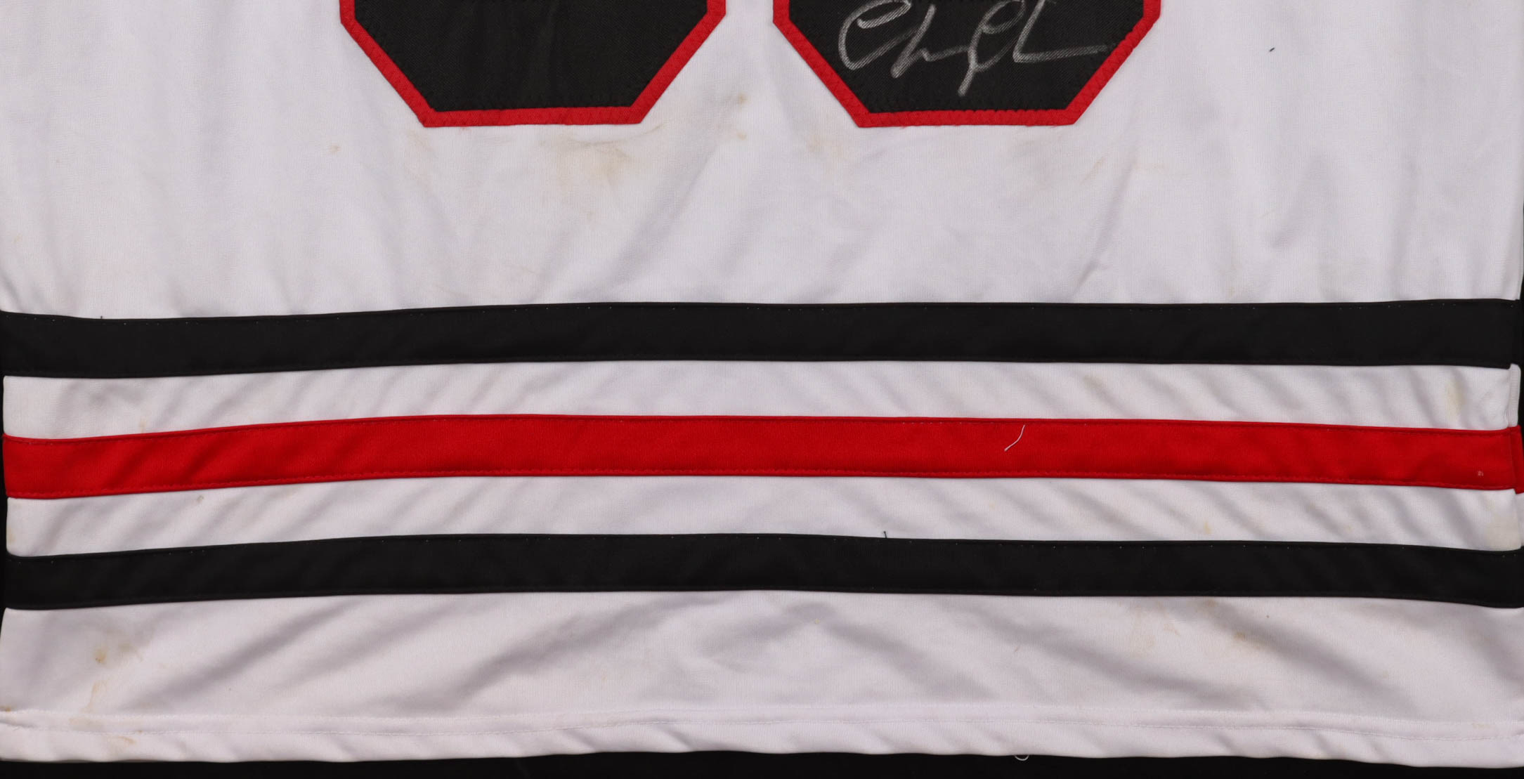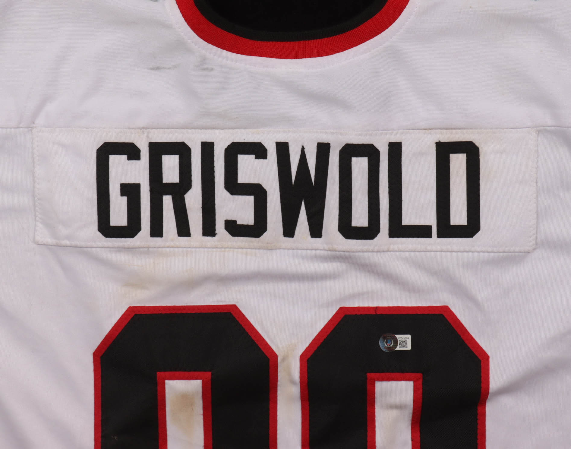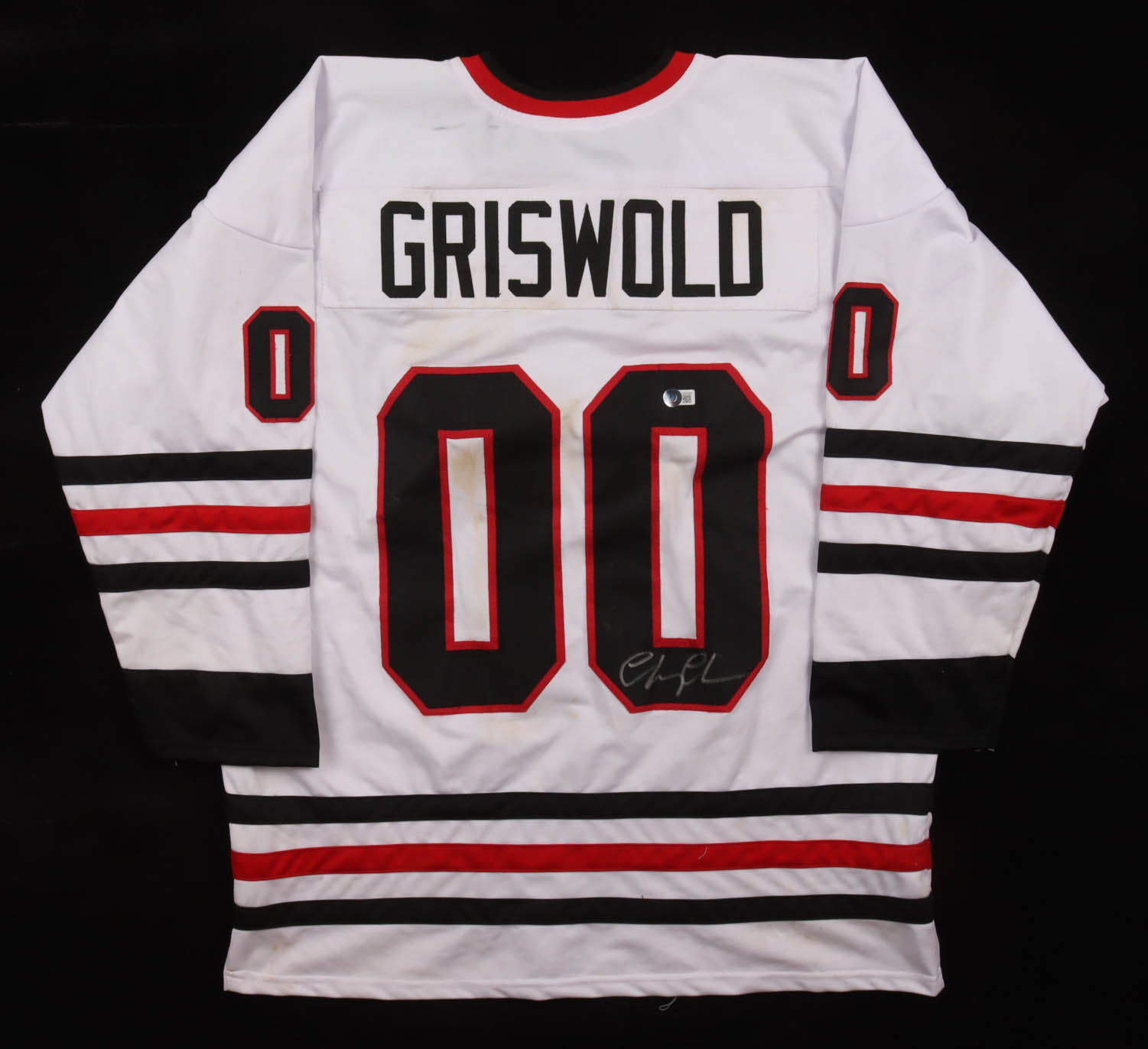 Custom jersey with everything sewn on, size XL. Hand-signed by Chevy Chase (Clark Griswold). Please note, the jersey is heavily stained throughout. See photos for more detail regarding the condition of the item.