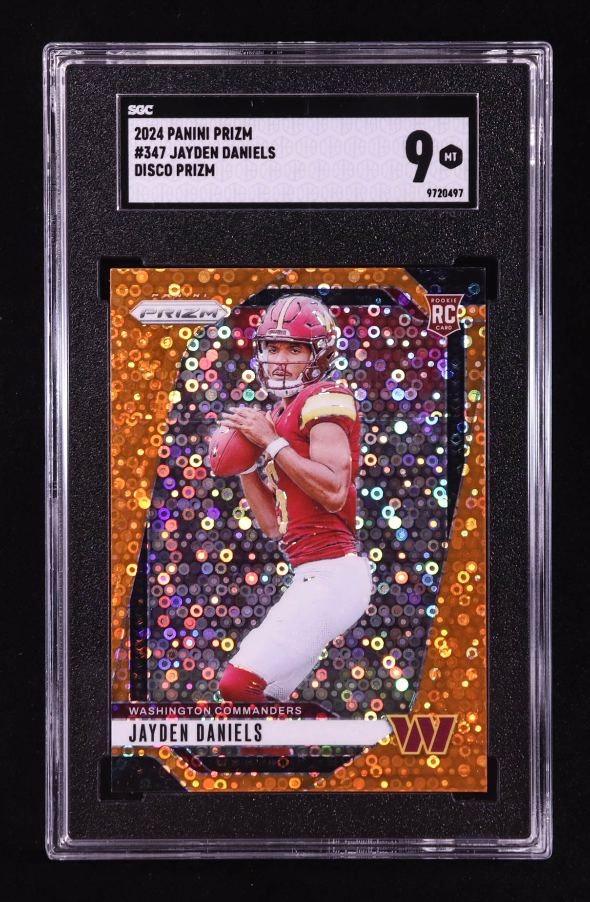 Jayden Daniels 2024 Panini Prizm Prizms Orange Disco #347 RC (SGC 9)