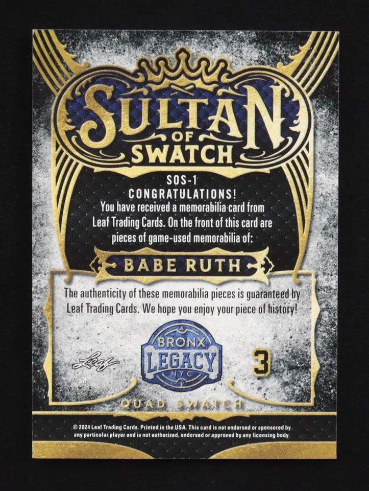 Babe Ruth 2024 Leaf Sultan of Swatch Quad Bronx Legacy Bronze Auto #SOS-1 #6/7