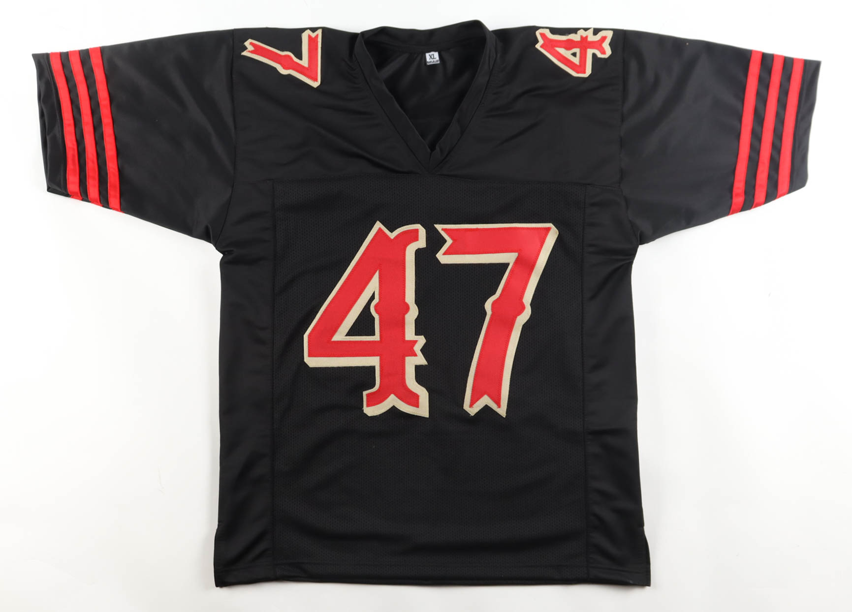 Custom jersey with everything sewn on, size XL. Hand-signed by Bryce Huff (San Francisco 49ers).
