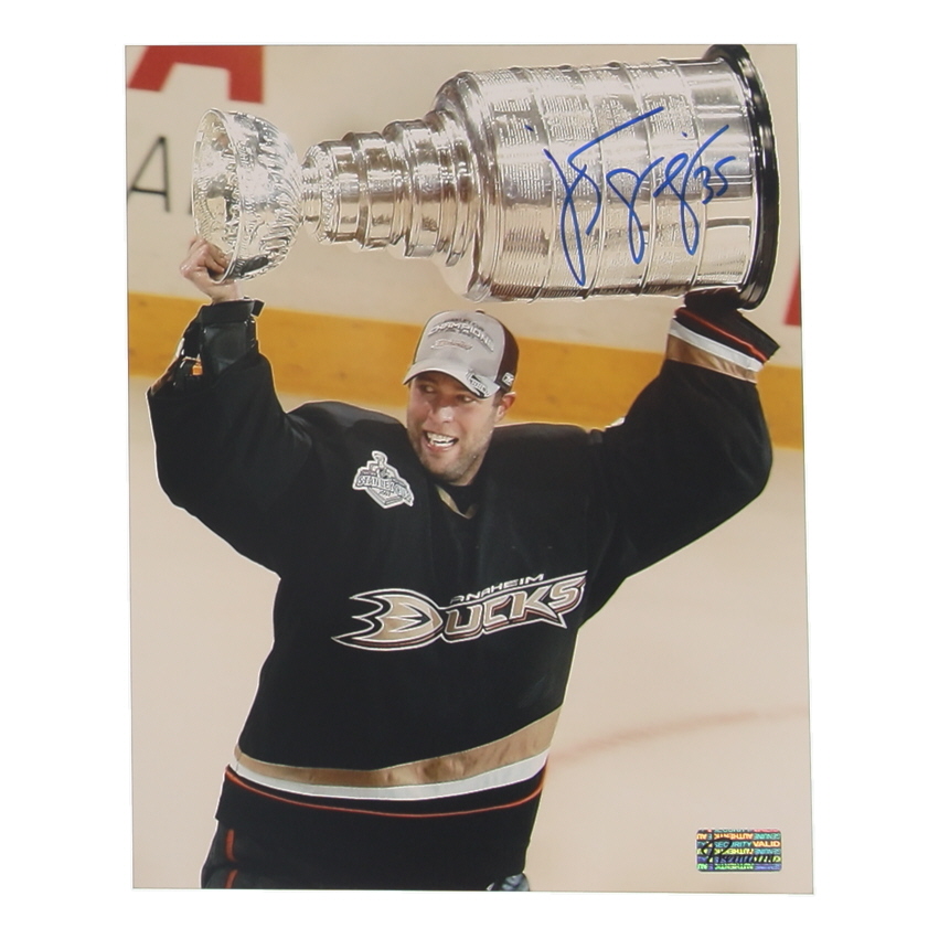 Photo measures 8" x 10" in size and has been hand signed by Jean-Sebastien Giguere (Anaheim Ducks).