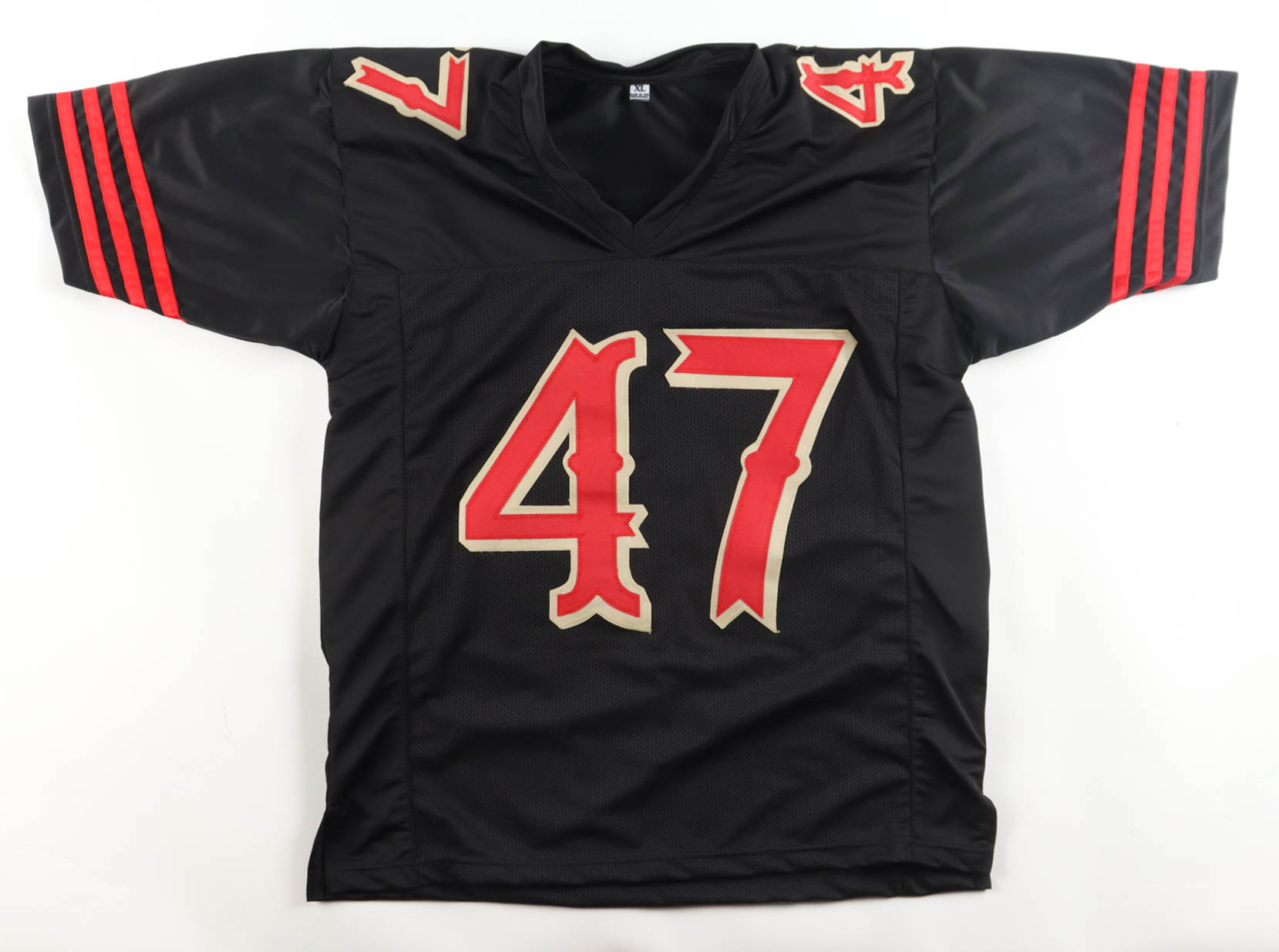 Custom jersey with everything sewn on, size XL. Hand-signed by Bryce Huff (San Francisco 49ers).