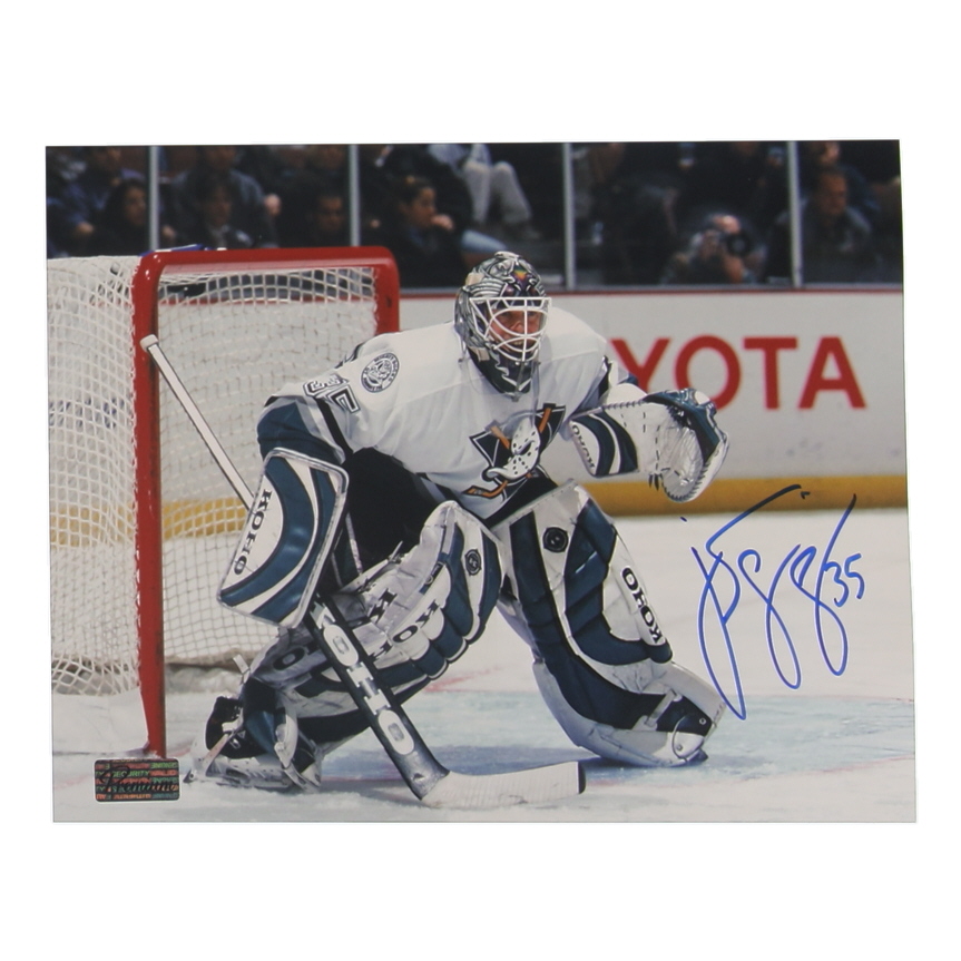 Photo measures 8" x 10" in size and has been hand signed by Jean-Sebastien Giguere (Anaheim Ducks).