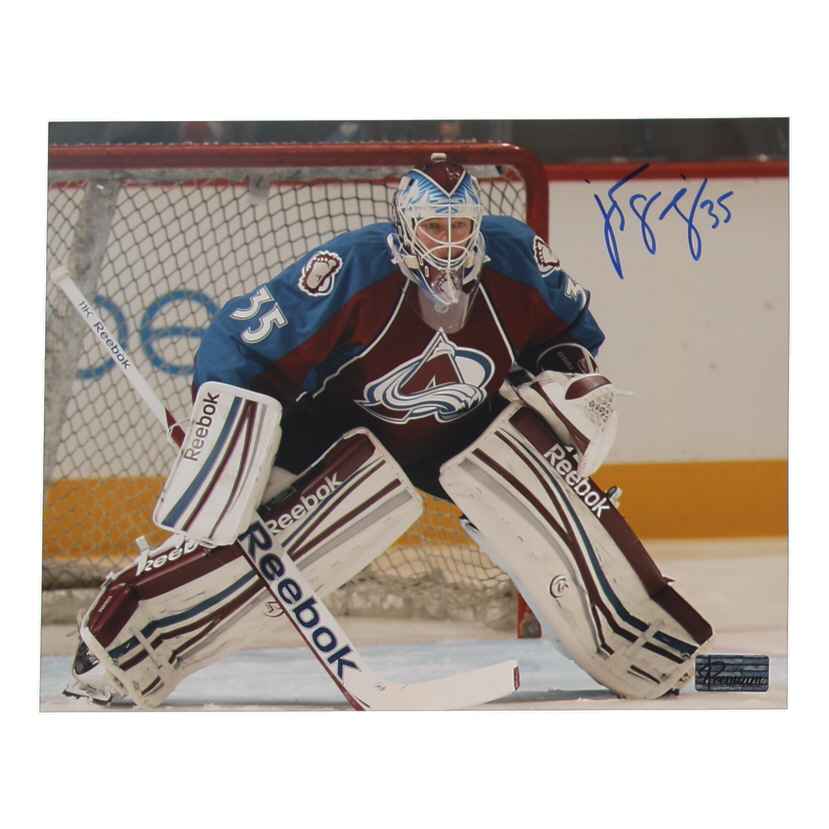 Photo measures 8" x 10" in size and has been hand signed by Jean-Sebastien Giguere (Colorado Avalanche).